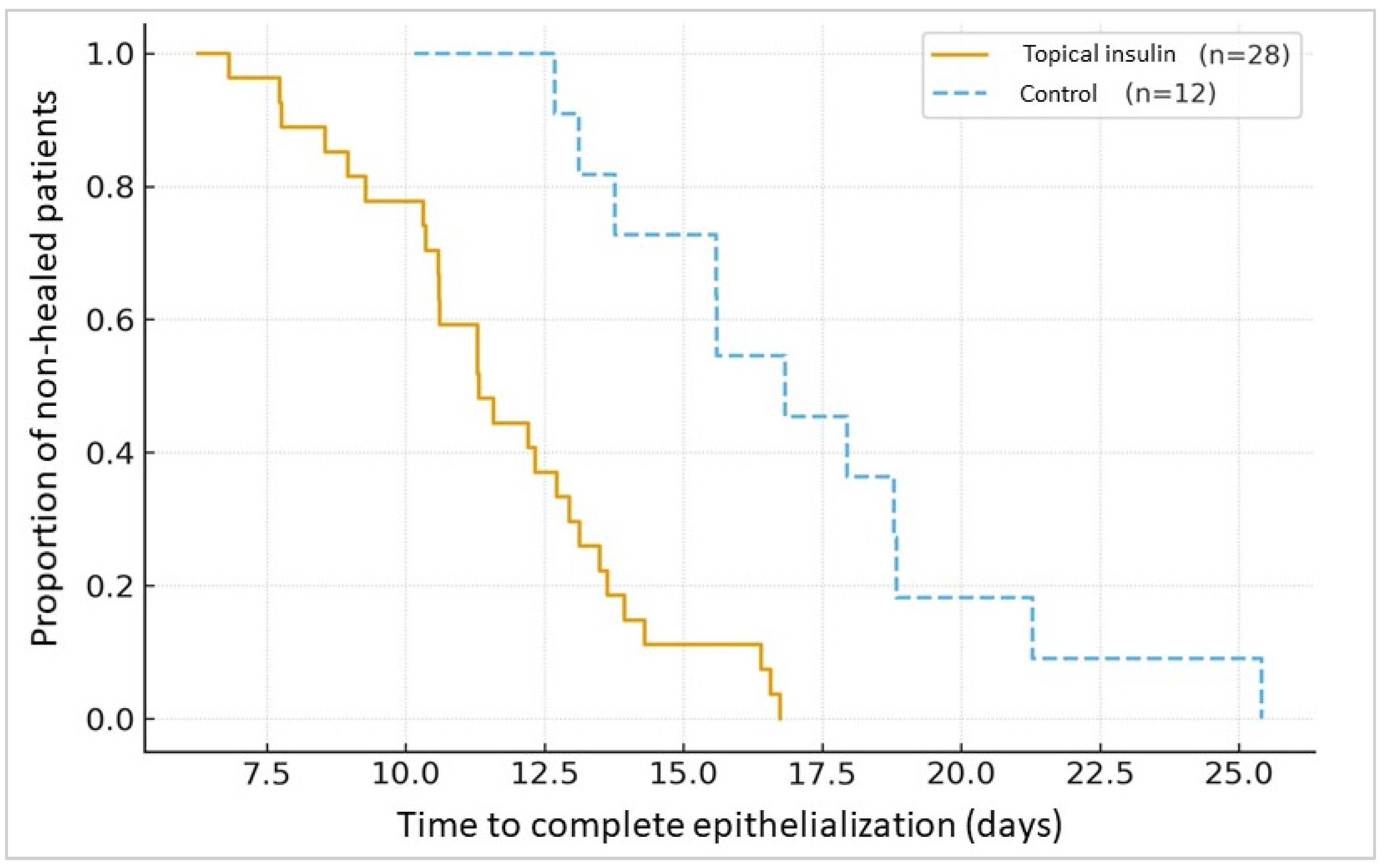 | Complete epithelialization | 90% | 41.7% | χ2 = 6.33 | 0.012 | 16–80% |