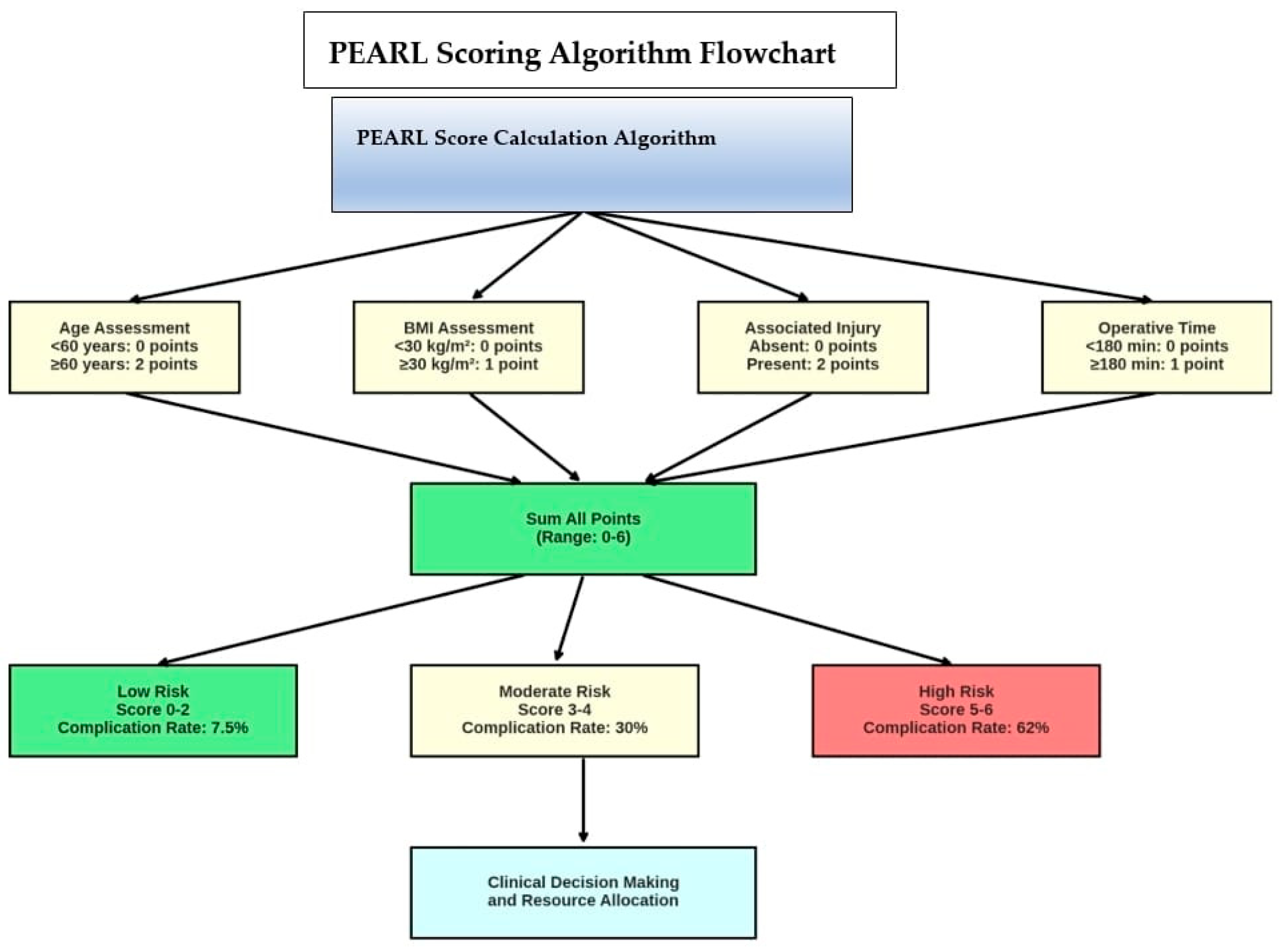 Topsakal, F.E.; Özdemir, E.; Altay, N.; Demirel, E. The PEARL Score for Predicting Postoperative Complication Risk in Patients with Pelvic and Acetabular Fractures: Development of a Novel Comprehensive Risk Scoring System. Medicina 2025, 61, 1995. https://doi.org/10.3390/medicina61111995
