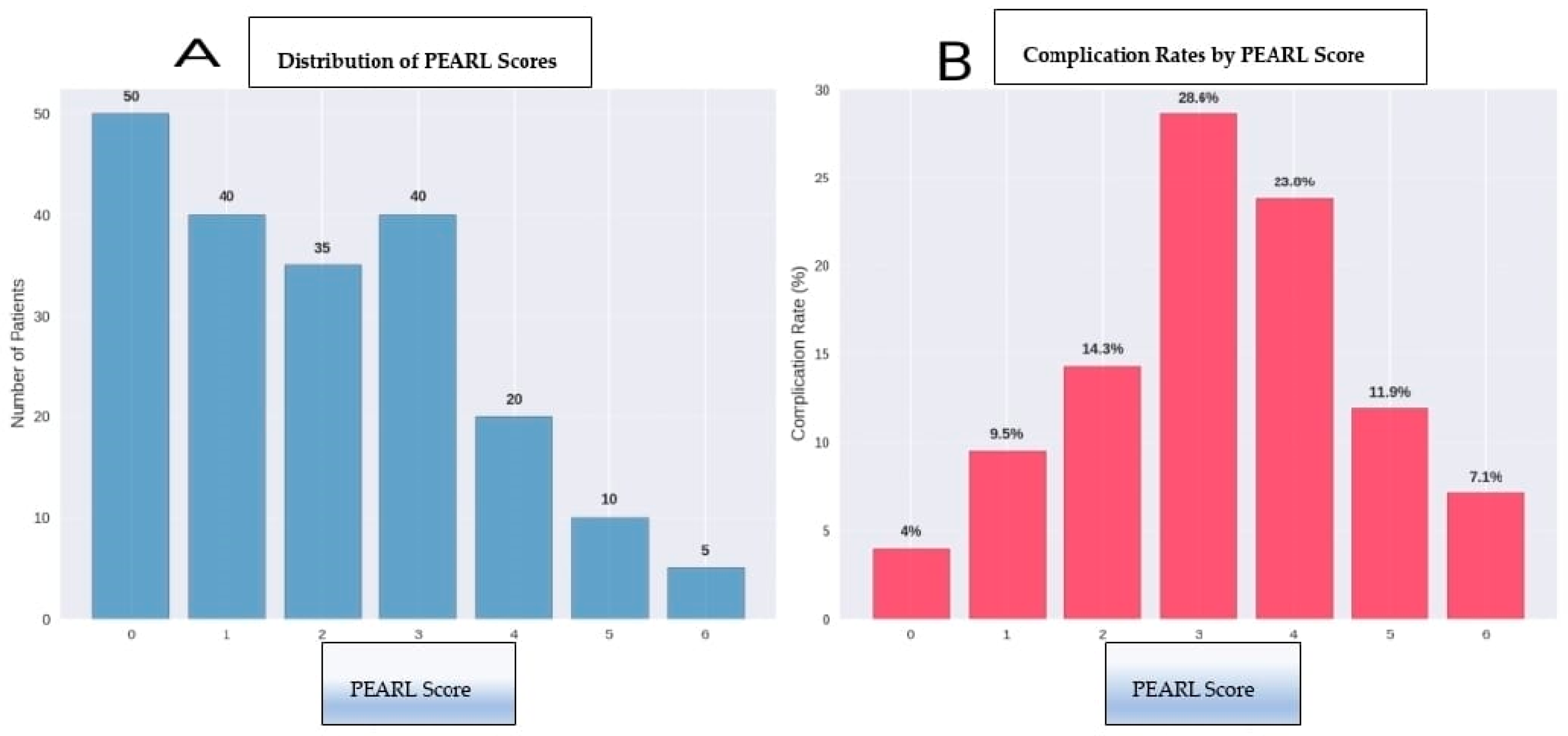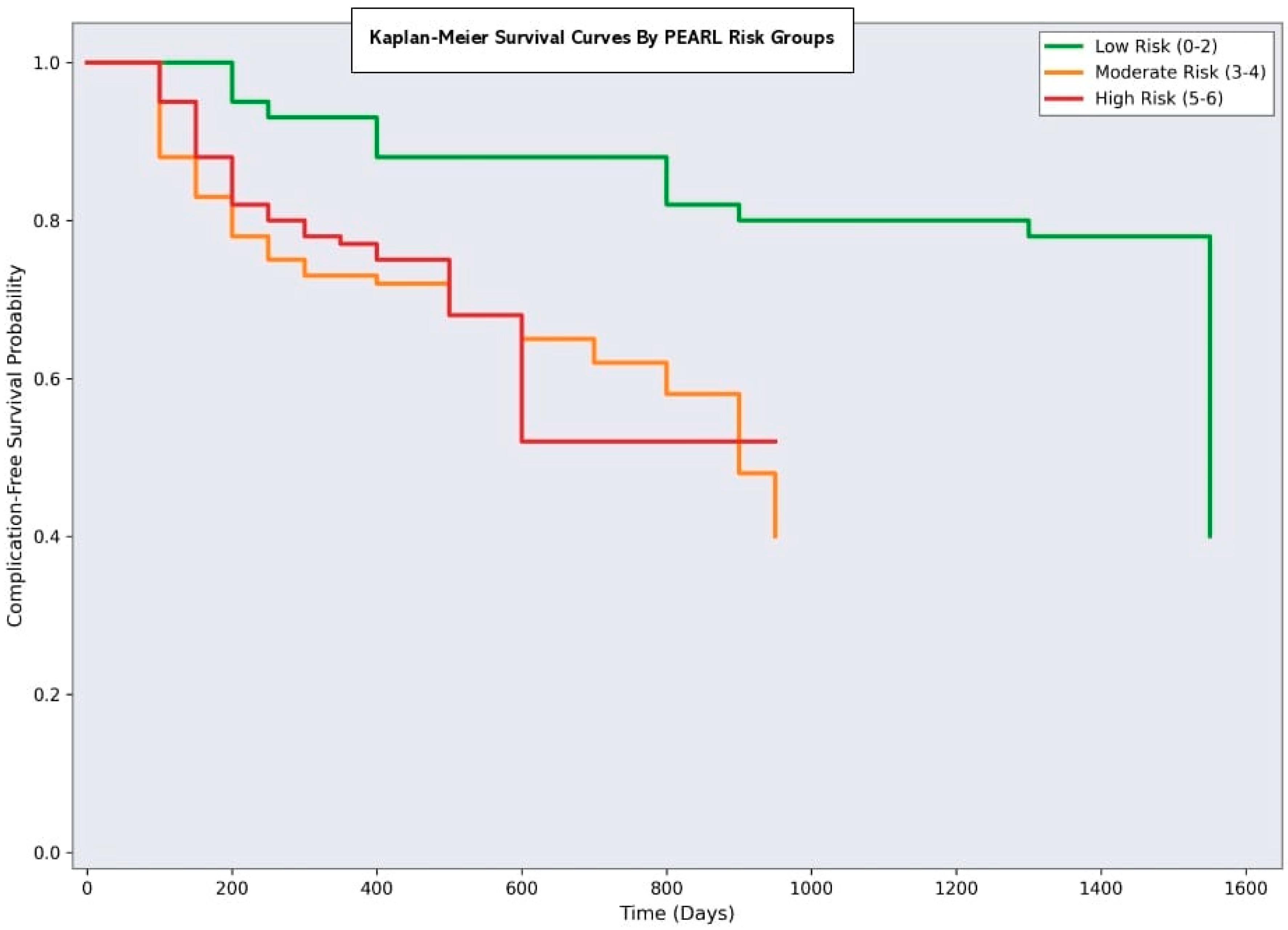 - Moderate Risk (PEARL 3–4): 70 patients (35%) with 30% complication rate