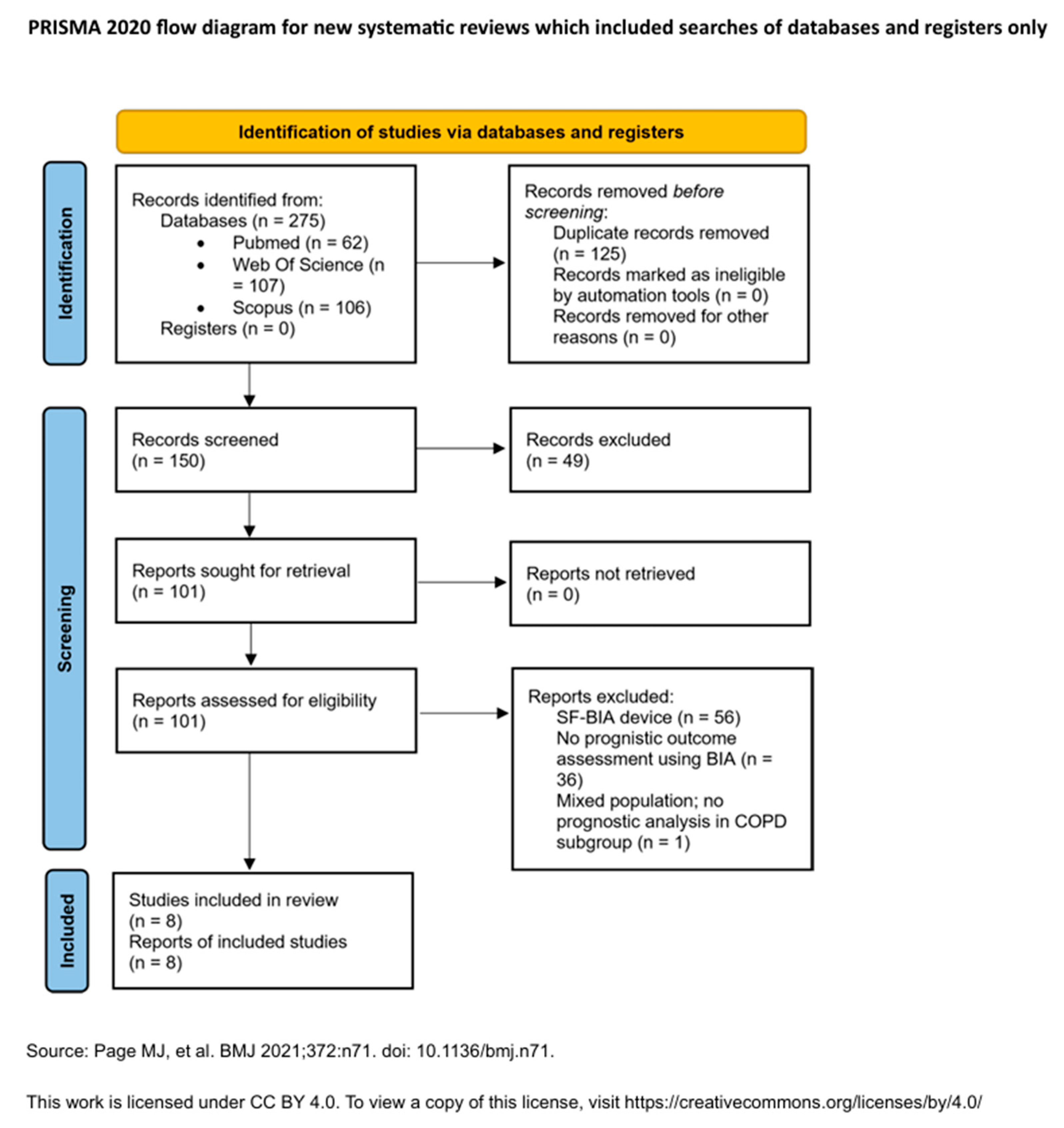 - Outcomes: Studies were required to report prognostic endpoints associated with BIA parameters, including all-cause mortality, survival, frequency of exacerbations, or hospital readmissions.
