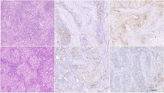 - D’Alessandris, N.; Palaia, I.; Pernazza, A.; Tomao, F.; Di Pinto, A.; Musacchio, L.; Leopizzi, M.; Di Maio, V.; Pecorella, I.; Benedetti Panici, P.; et al. PD-L1 expression is associated with tumor infiltrating lymphocytes that predict response to NACT in squamous cell cervical cancer. Virchows Arch. 2021, 478, 517–525. [Google Scholar] [CrossRef] [PubMed]