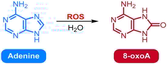 Adenine can be oxidized to 8-oxo-7,8-Dihydroadenine (8-oxoA) by a variety of oxidizing agents, such as H2O2, ozone, and peroxynitrite (Figure 2). The reaction is catalyzed by enzymes, such as xanthine oxidase (XO), myeloperoxidase, and NADPH oxidase. The reaction proceeds via the formation of an intermediate radical, which is then converted to the final product. The reaction is reversible, and the product can be reduced back to adenine [].