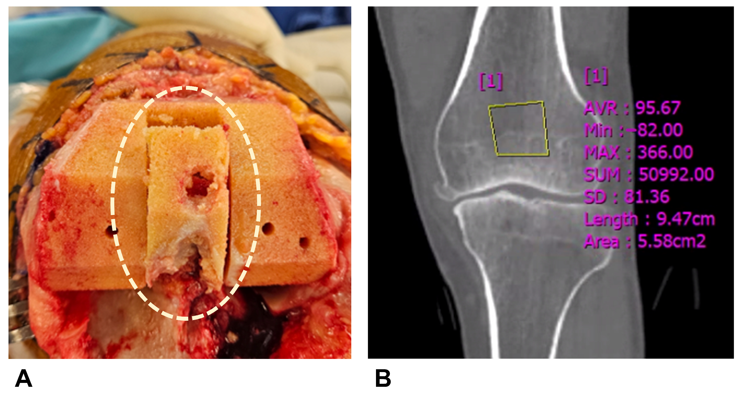 | Good | The surface shows multiple pores of <2 mm in diameter scattered across the resected area. Despite the presence of these small defects, the overall bony contour is well maintained, suggesting acceptable quality for mechanical interlocking. |