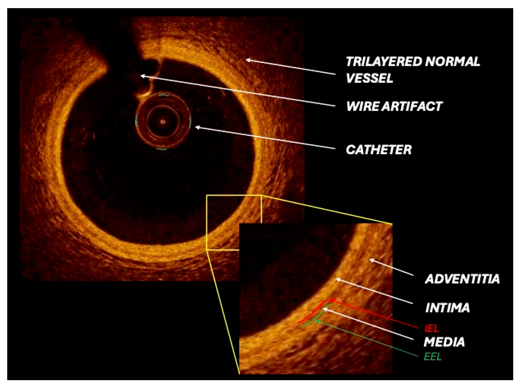 | Type IV | Pre-existing fibroatheroma: native atherosclerotic plaque appearing as a signal-poor region with blurred borders between the stent struts and the adventitia |