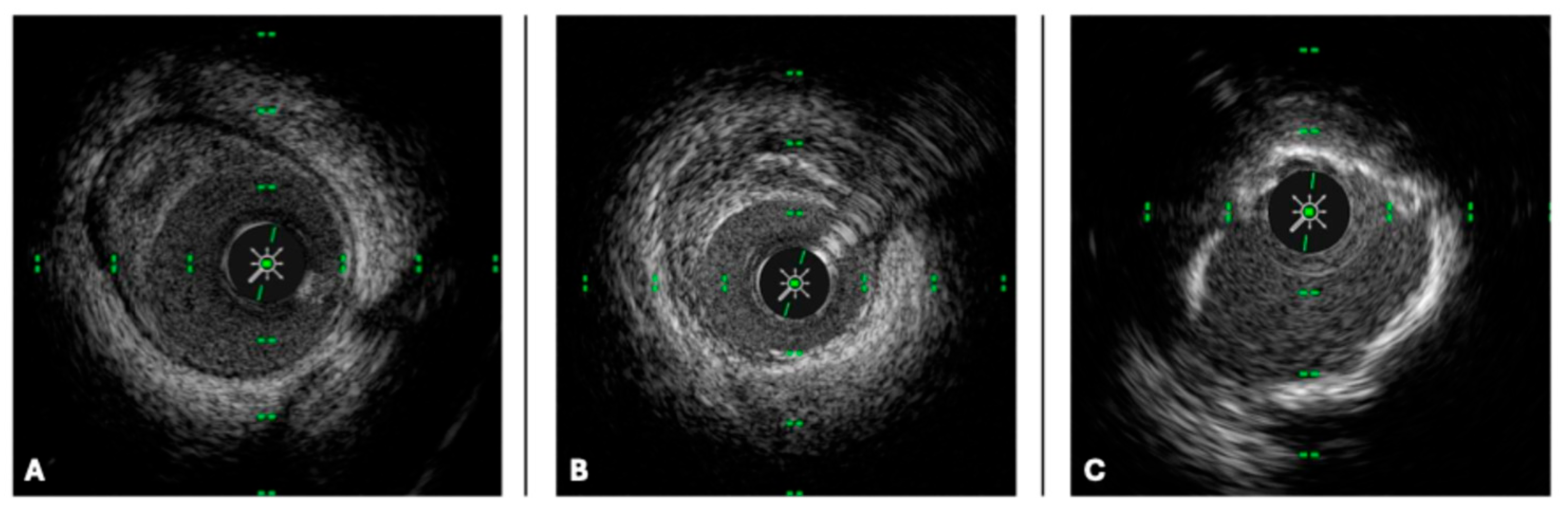- Ugo, F.; Franzino, M.; Massaro, G.; Maltese, L.; Cavallino, C.; Abdirashid, M.; Benedetto, D.; Costa, F.; Rametta, F.; Sangiorgi, G.M. The Role of IVUS in Coronary Complications. Catheter. Cardiovasc. Interv. 2025, 105, 1171–1182. [Google Scholar] [CrossRef]