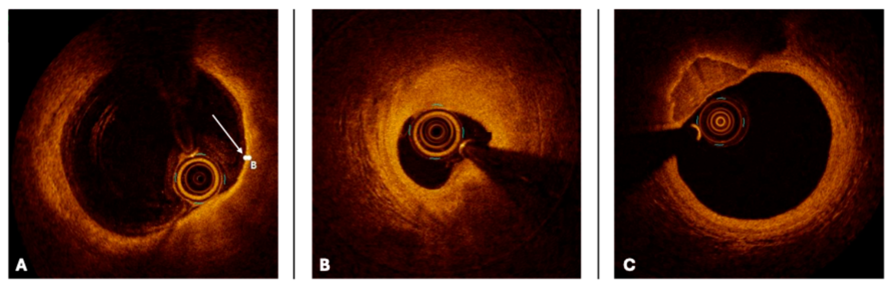 - Kim, B.G.; Kachel, M.; Kim, J.-S.; Guagliumi, G.; Kim, C.; Kim, I.-S.; Lee, Y.-J.; Lee, O.-H.; Byun, Y.S.; Milewski, K.; et al. Clinical Implications of Poststent Optical Coherence Tomographic Findings. JACC Cardiovasc. Imaging 2022, 15, 126–137. [Google Scholar] [CrossRef]