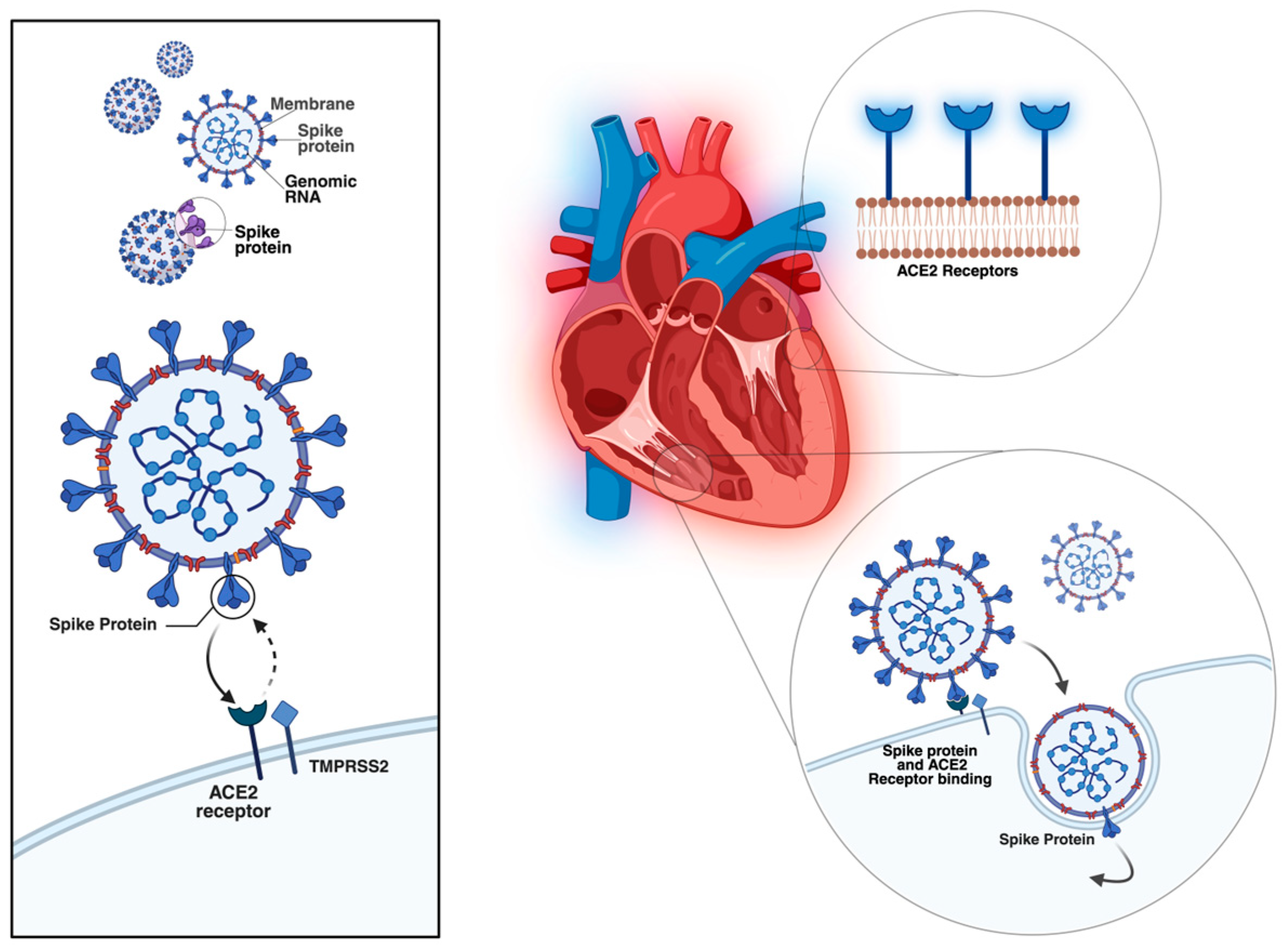 Entry mechanism of SARS-CoV-2 into the cardiac cells (original figure created by Manole Martin with Biorender) [