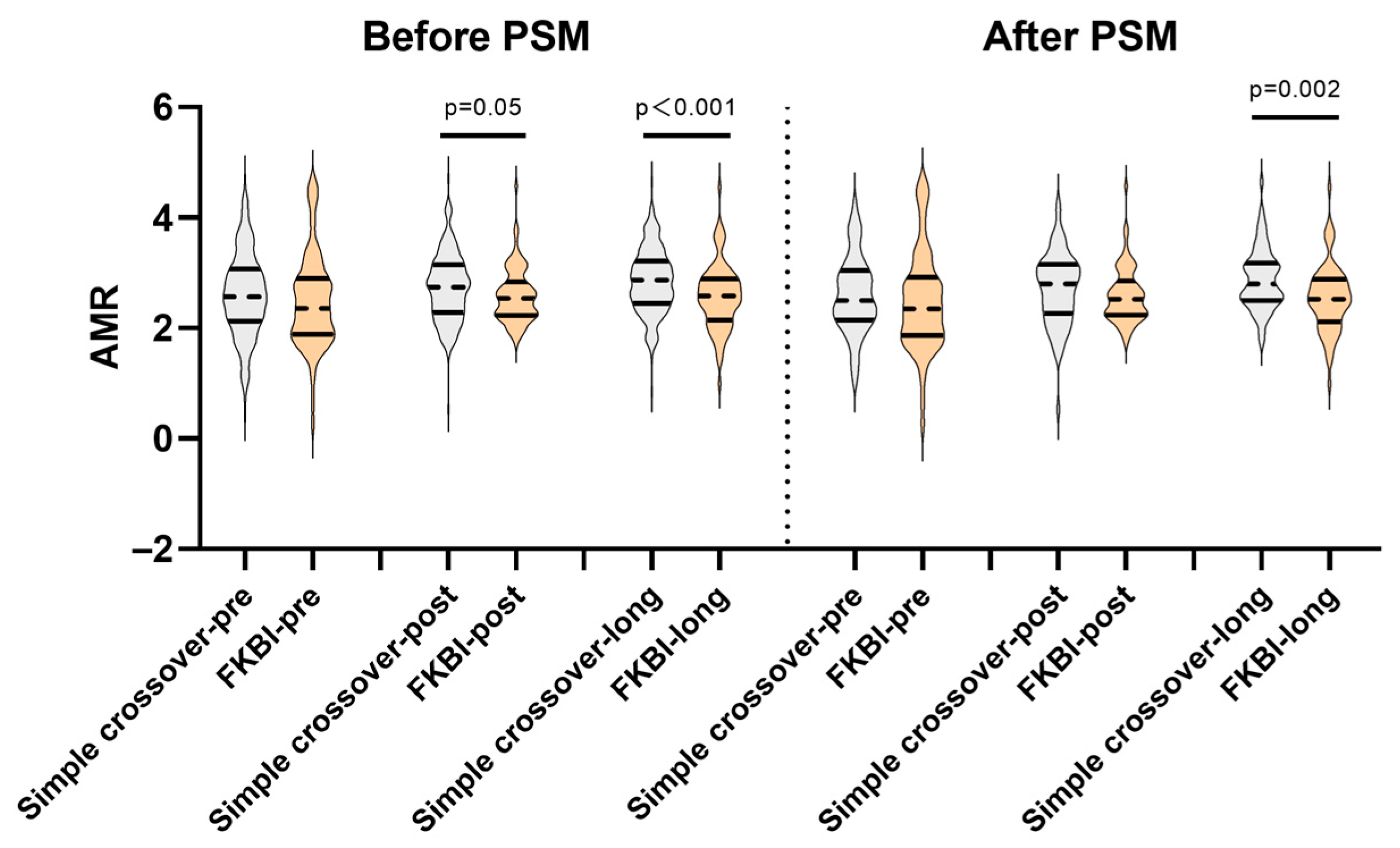 | AMR-long | 2.87 (2.45–3.22) | 2.59 (2.15–2.89) | <0.001 | 2.8 (2.5–3.18) | 2.52 (2.12–2.89) | 0.002 |