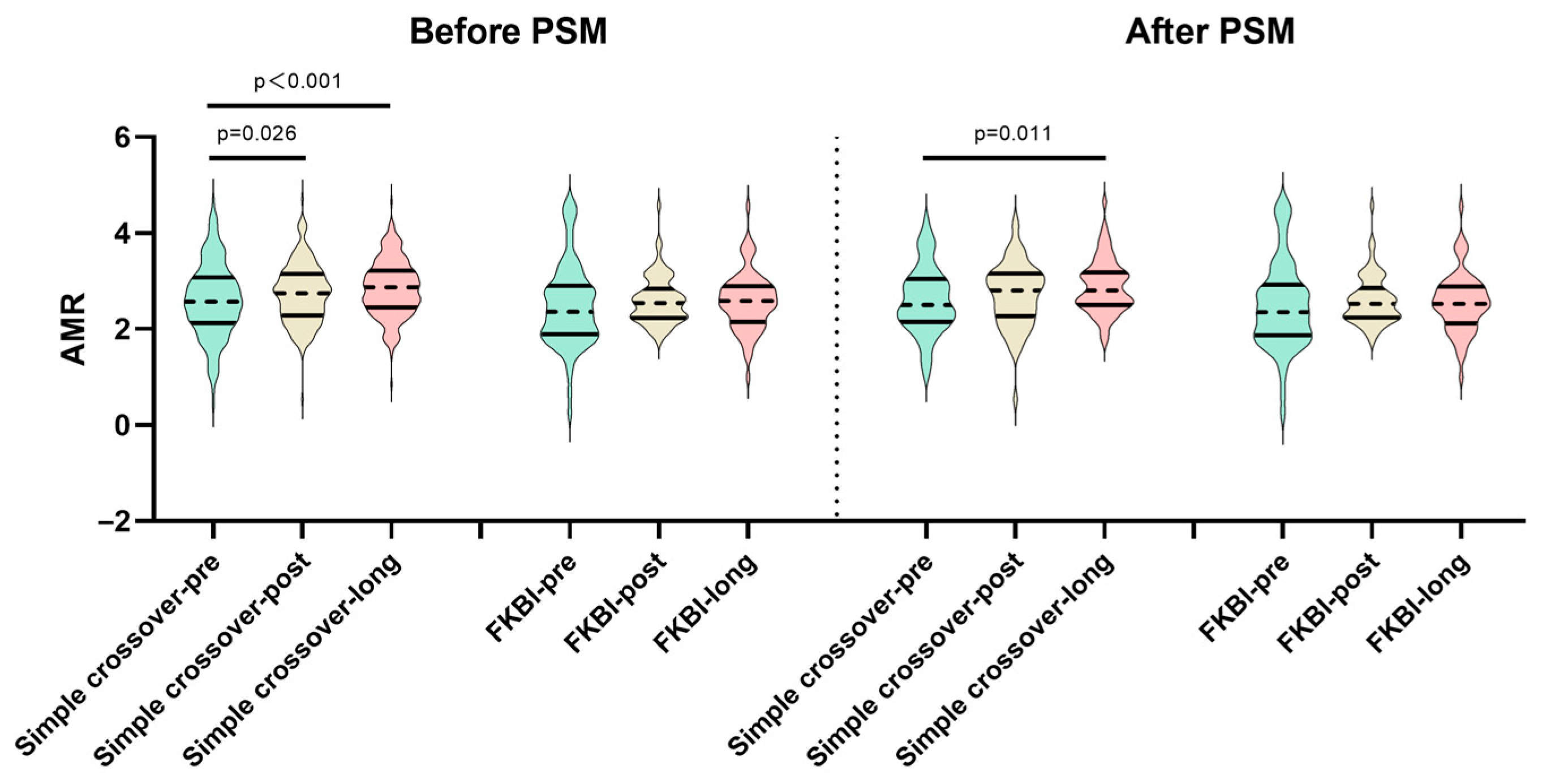 | After PSM | Simple crossover | 2.5 (2.15–3.04) | 2.8 (2.27–3.16) | 2.8 (2.5–3.18) | 0.011 |