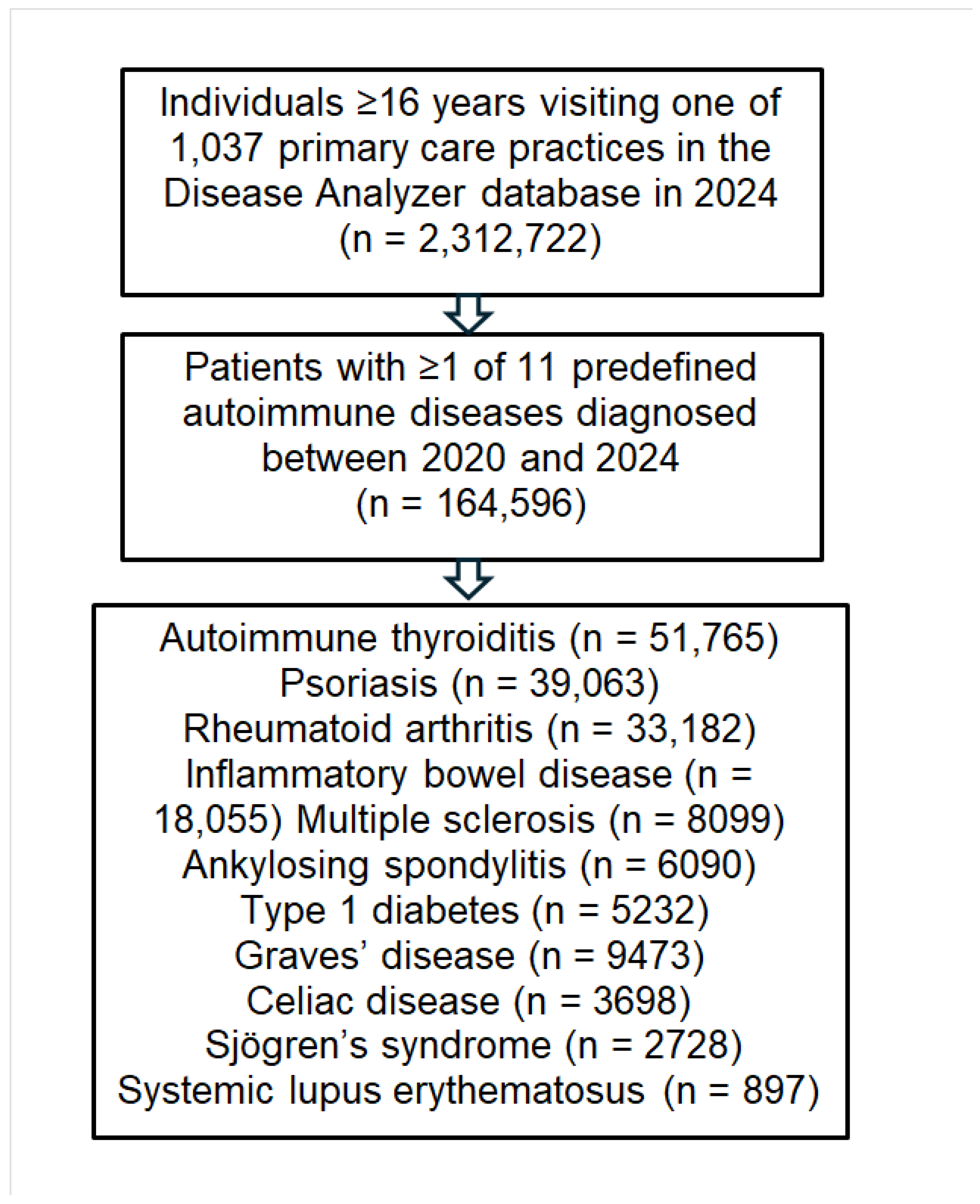 Kostev K, Kaur N, Höfle J, Konrad M, Hammed A, Tanislav C, Rodemer I. Sex Differences in Autoimmune Multimorbidity Across Eleven Disorders: A Real-World Primary Care Study in Germany. Medicina. 2025; 61(12):2091. https://doi.org/10.3390/medicina61122091
