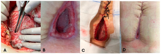 - Two patients (P3-P4) demonstrated enterocutaneous fistulas following colorectal surgery and gynecological surgery. Intraoperative findings, evolution, and healing process of enterocutaneous fistula in P4 are shown in Figure 1.