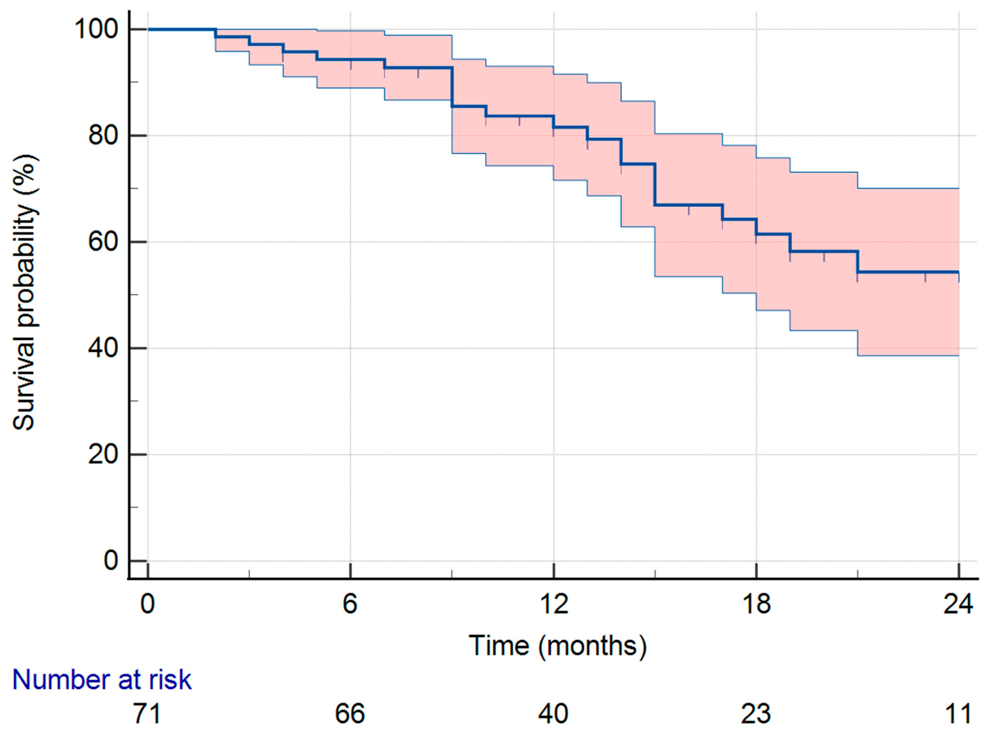 | Years (median) | −1.0504 | 0.4813 | 4.7639 | 0.0291 | 0.3498 | 0.1362 to 0.8984 |