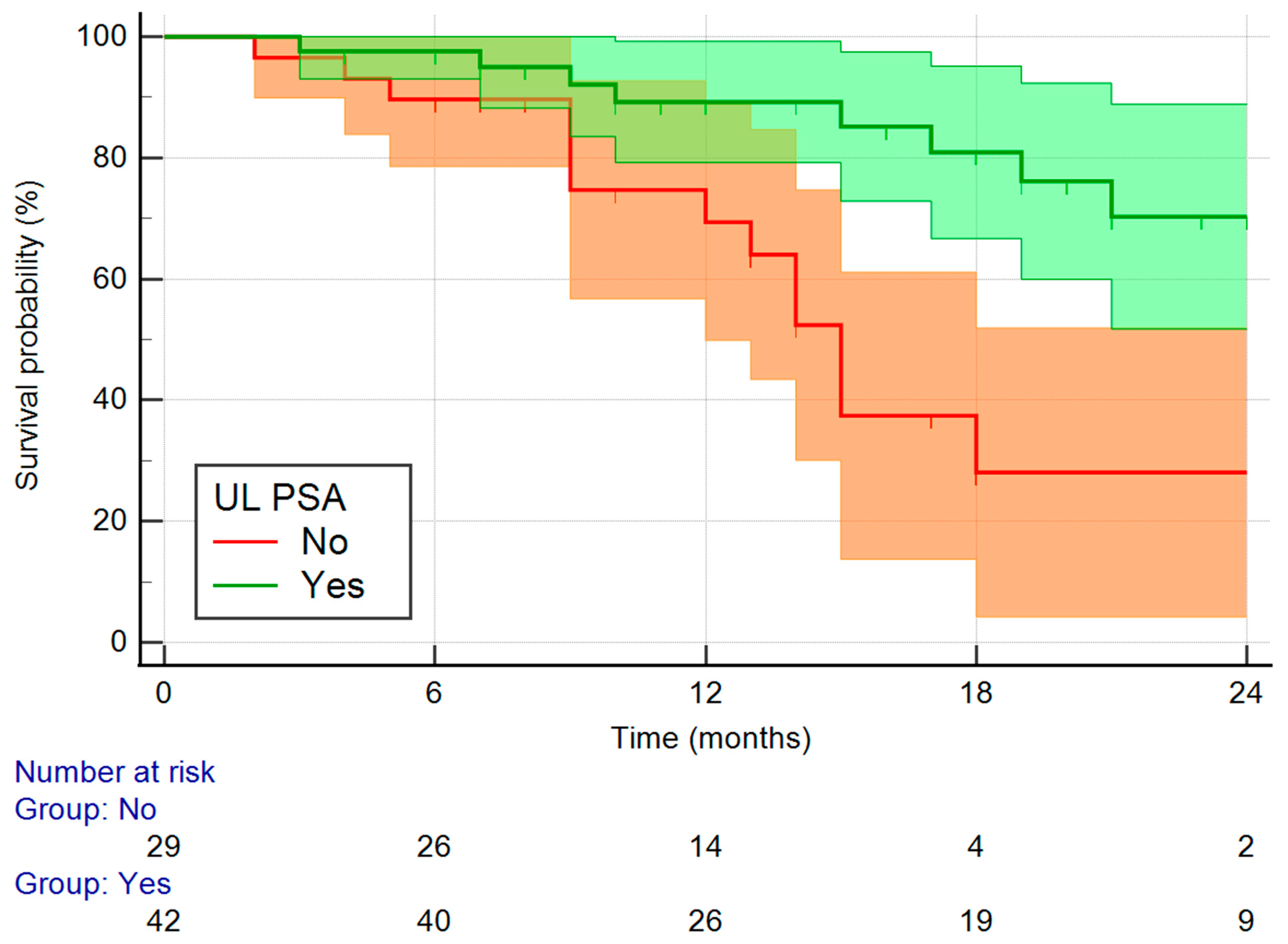 | UL PSA | −1.8156 | 0.5235 | 12.0297 | 0.0005 | 0.1627 | 0.0583 to 0.4540 |
