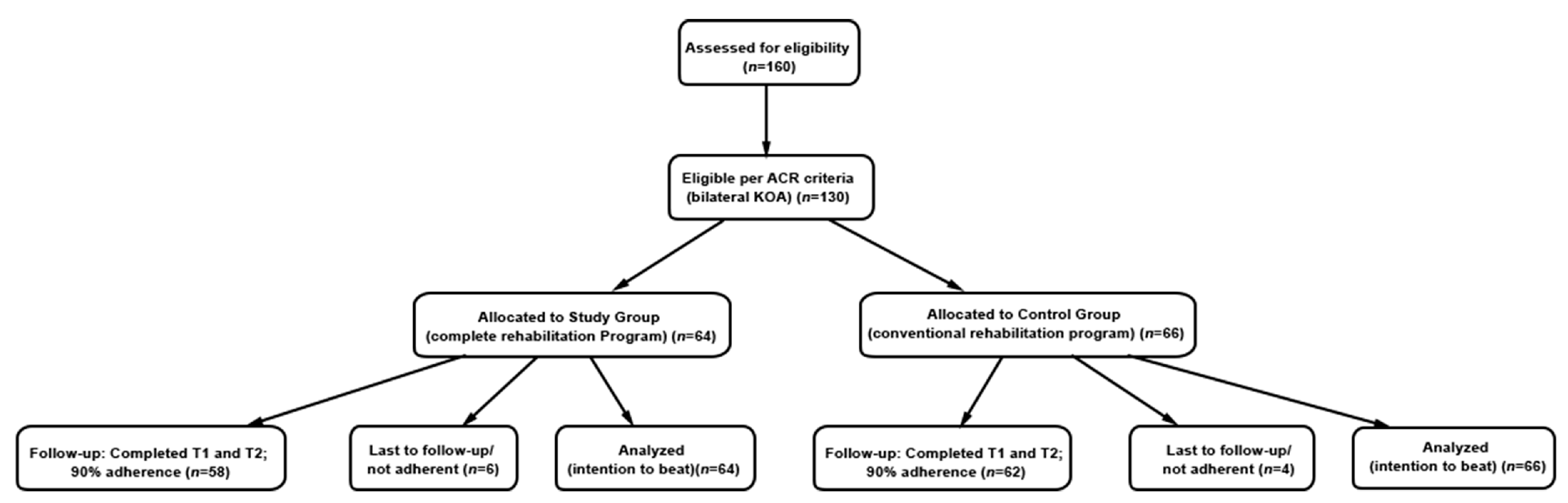 - Patients older than 65 years, age ranging between 65 and 80 years, diagnosed with KOA according to ACR criteria, and are also accepted in our country;