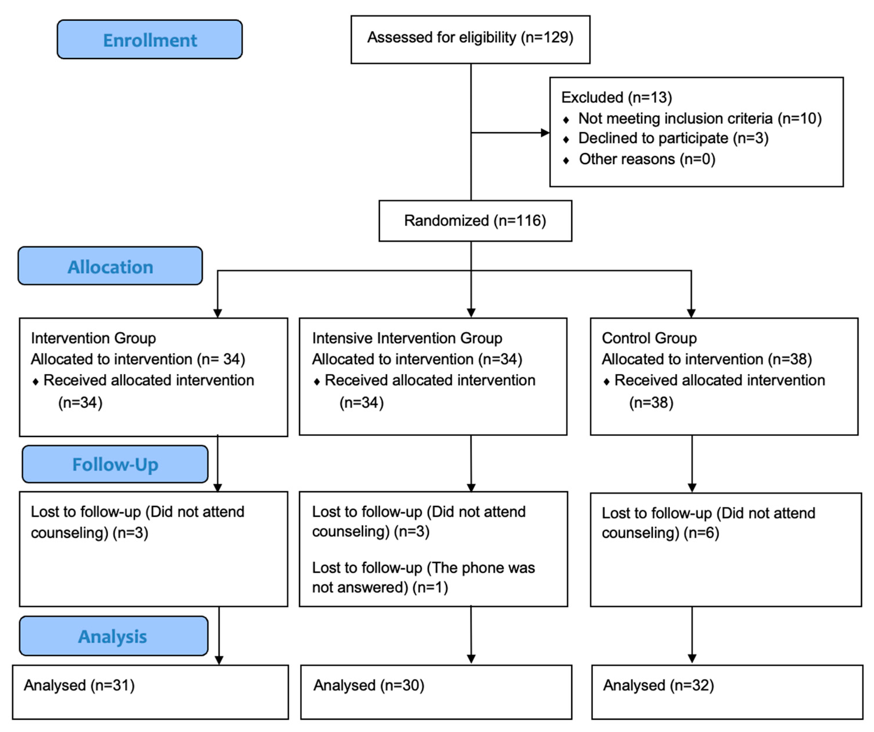 | Variables | Intervention Group (n = 31) | Intensive Intervention Group (n = 30) | Control Group (n = 32) | Total (n = 93) | p-Value a |