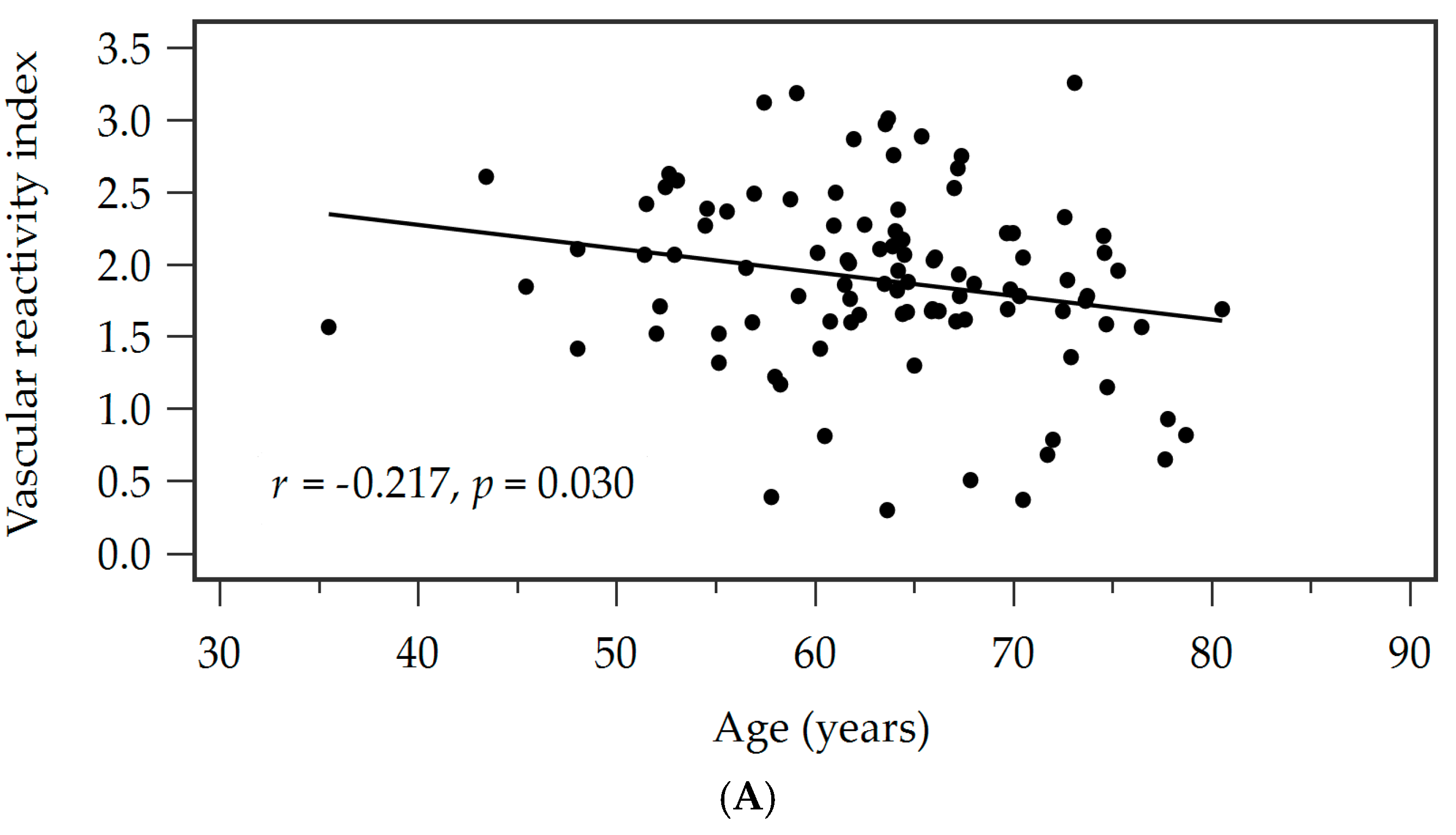 | Characteristics | All Participants (n = 100) | Good Vascular Reactivity (n = 44) | Intermediate Vascular Reactivity (n = 46) | Poor Vascular Reactivity (n = 10) | p Value |
