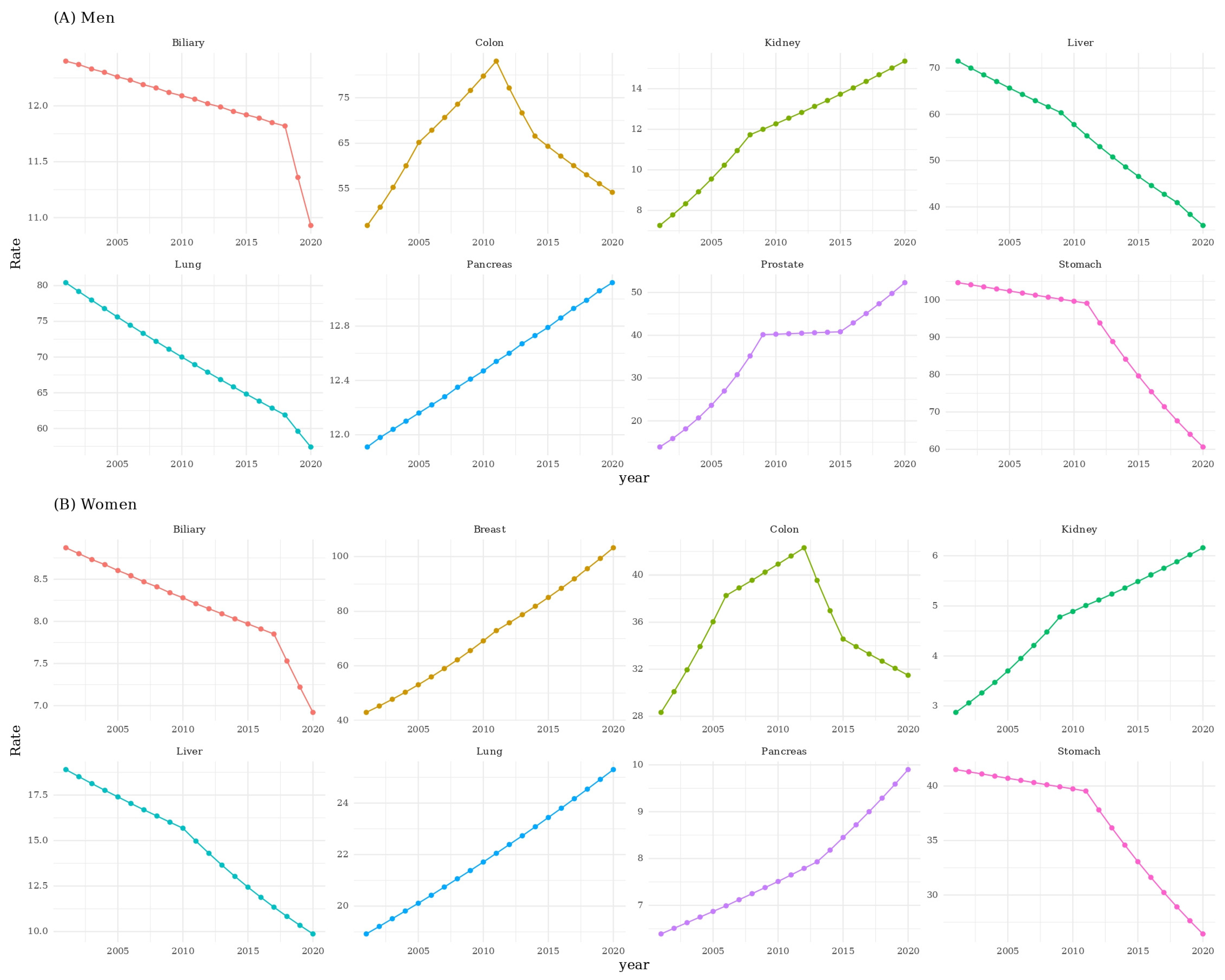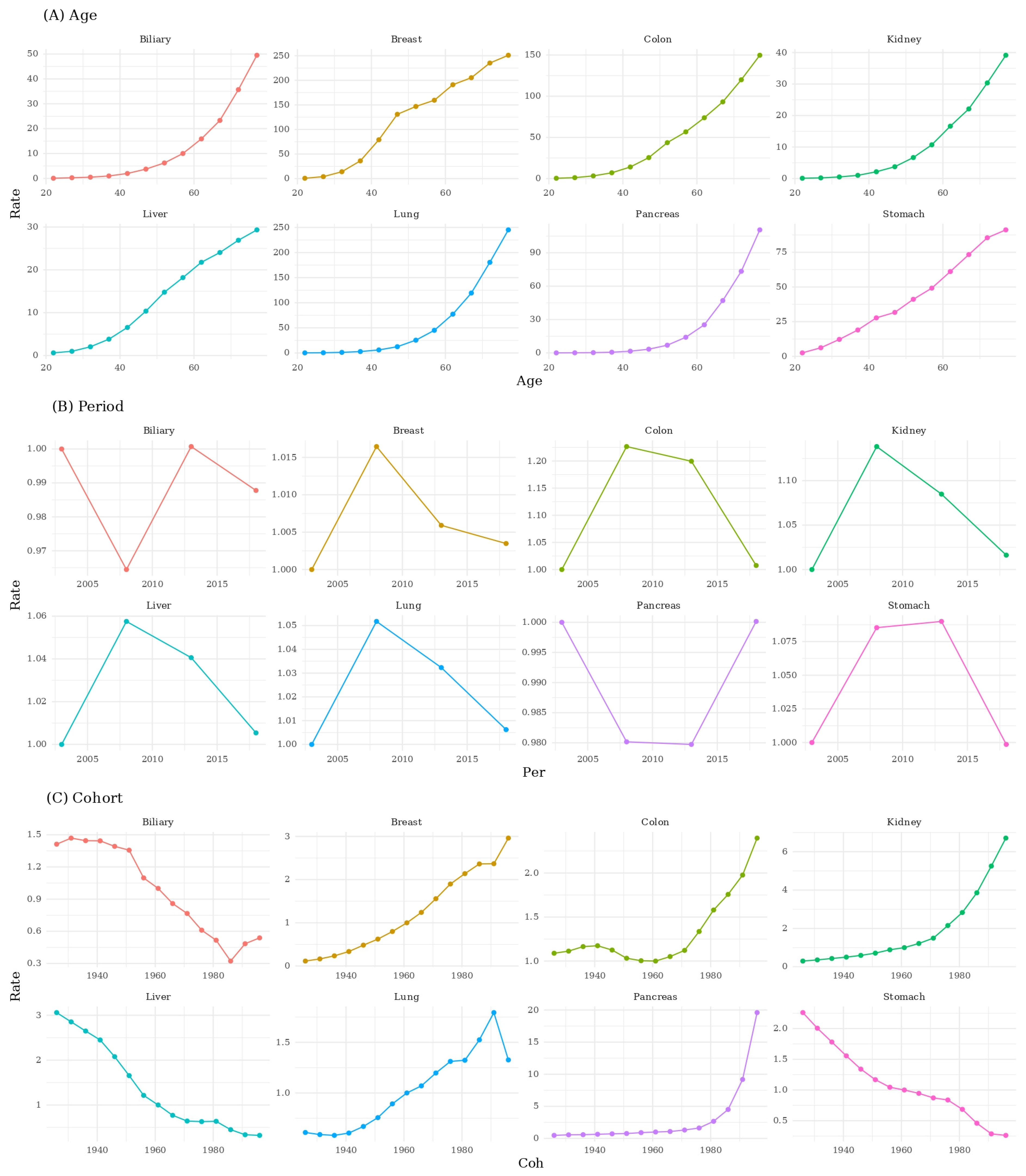 APA StyleLee, H., Kim, M., Song, G., Joung, J. Y., Seo, H., Yoon, J.-H., & Chung, J. (2025). Long-Term Cancer Incidence Trends in Korea (2001–2020): An Age–Period–Cohort and Joinpoint Analysis with a Focus on Younger Cohorts. Medicina, 61(12), 2179. https://doi.org/10.3390/medicina61122179