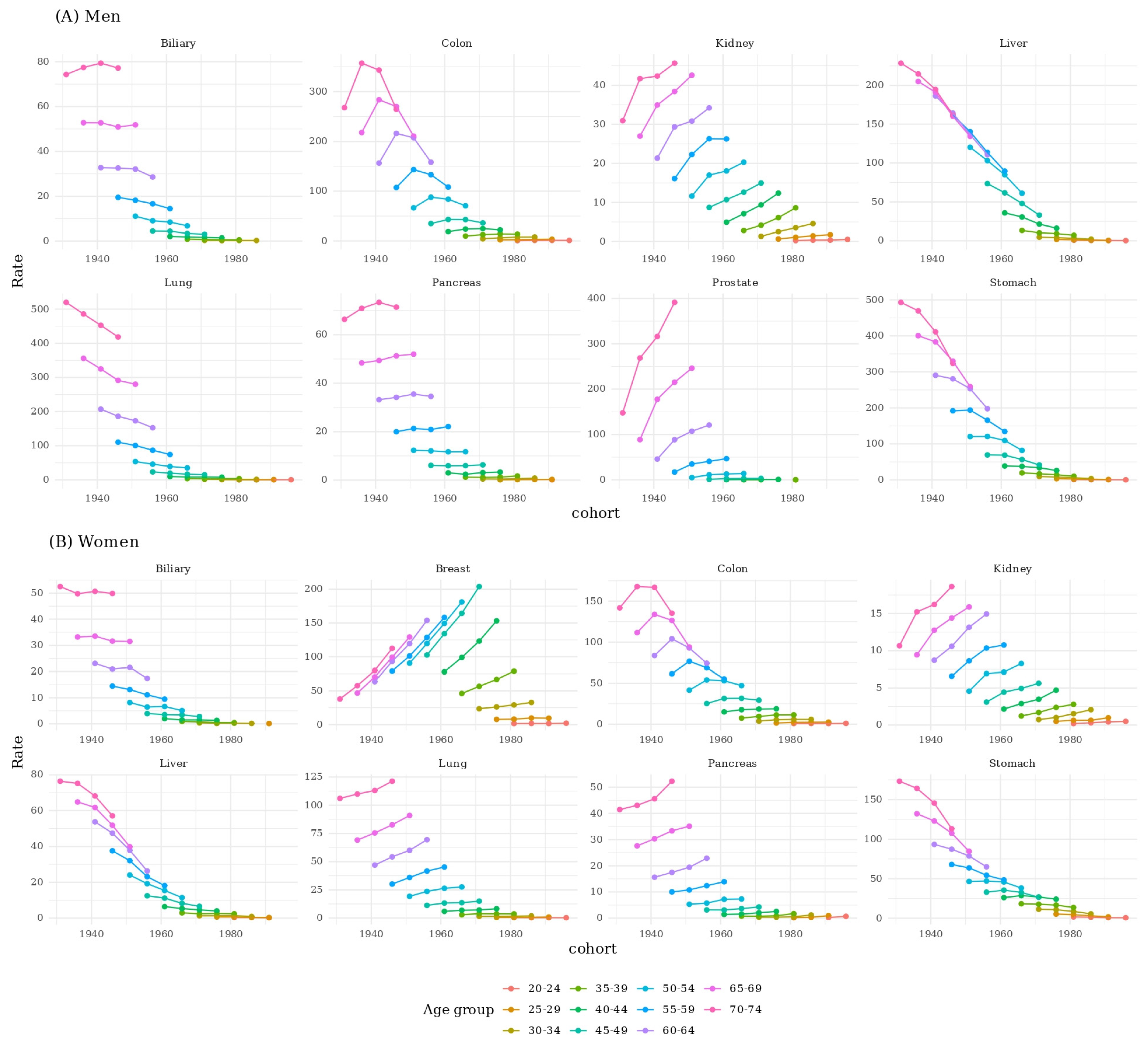 - Kim, S.; Keum, N. Global trends in early-onset and late-onset cancer incidence. J. Public Health 2025, 47, 699–709. [Google Scholar] [CrossRef]