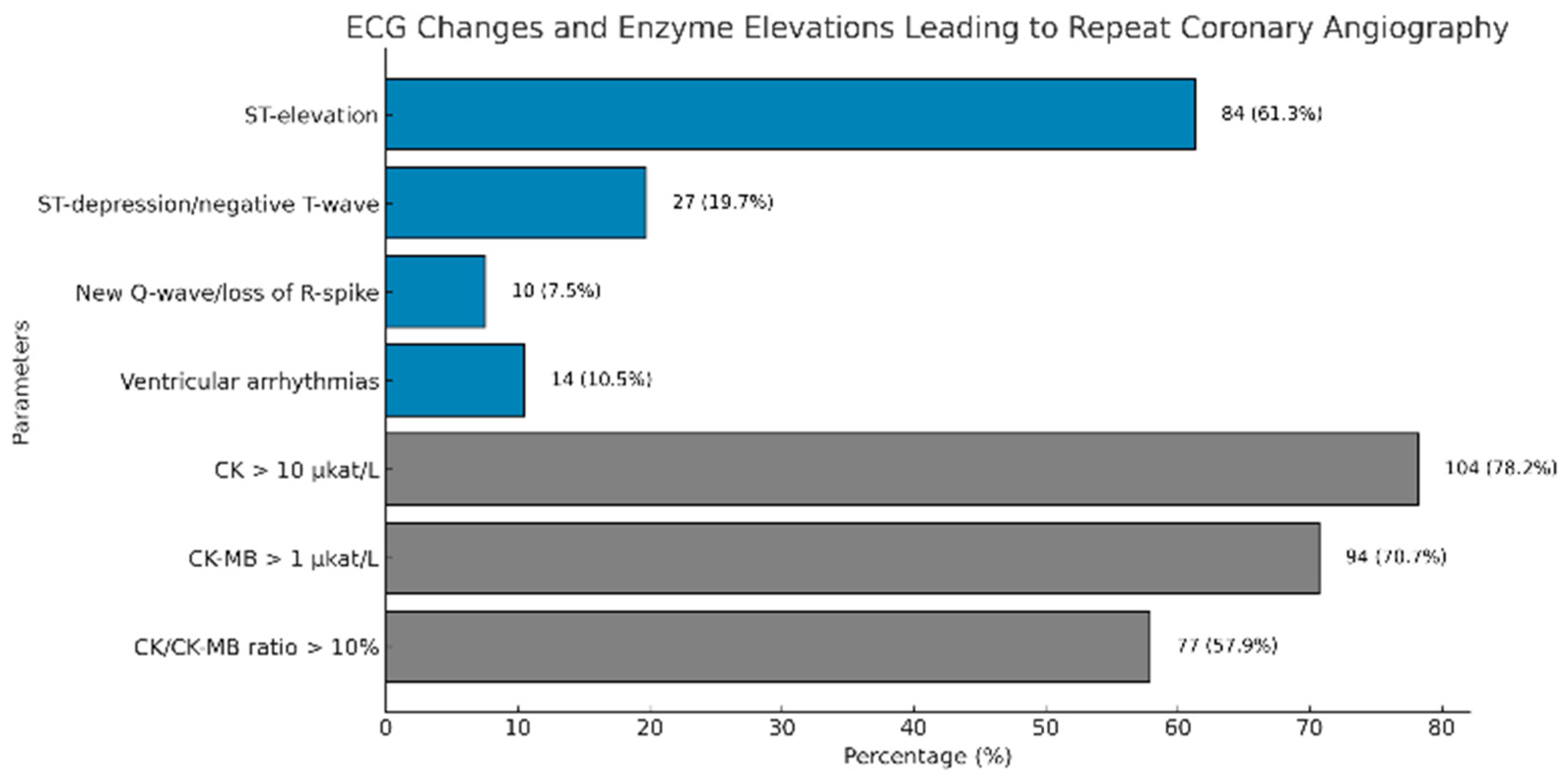 3.4. ECG Changes and Enzyme Elevations Leading to Repeat Coronary Angiography