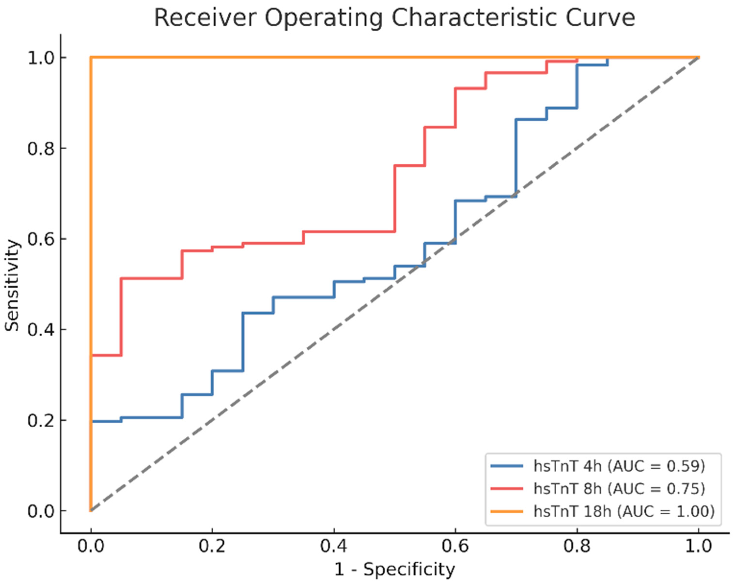 3.10. ROC Analysis of Postoperative Enzyme Course of hsTnT