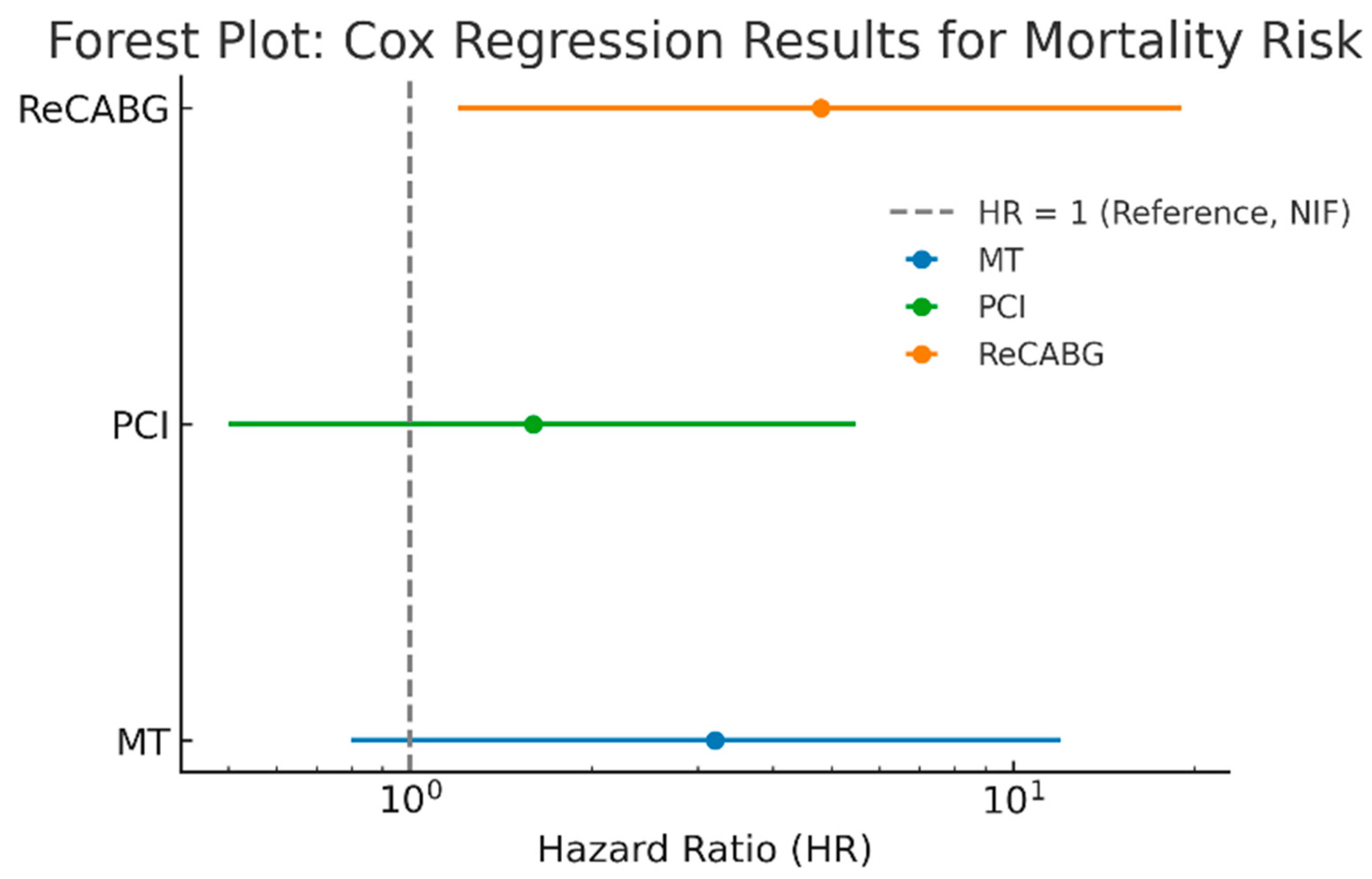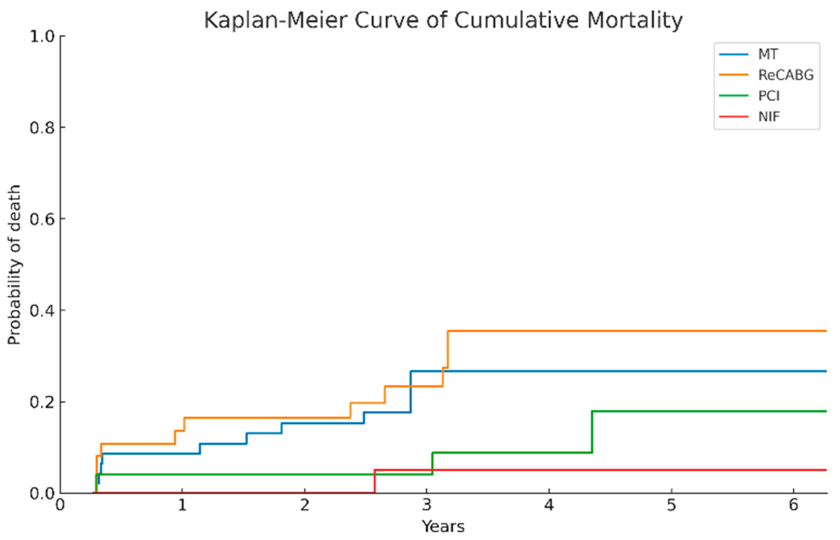 3.13. Comparison of Long-Term Survival Across Treatment Groups