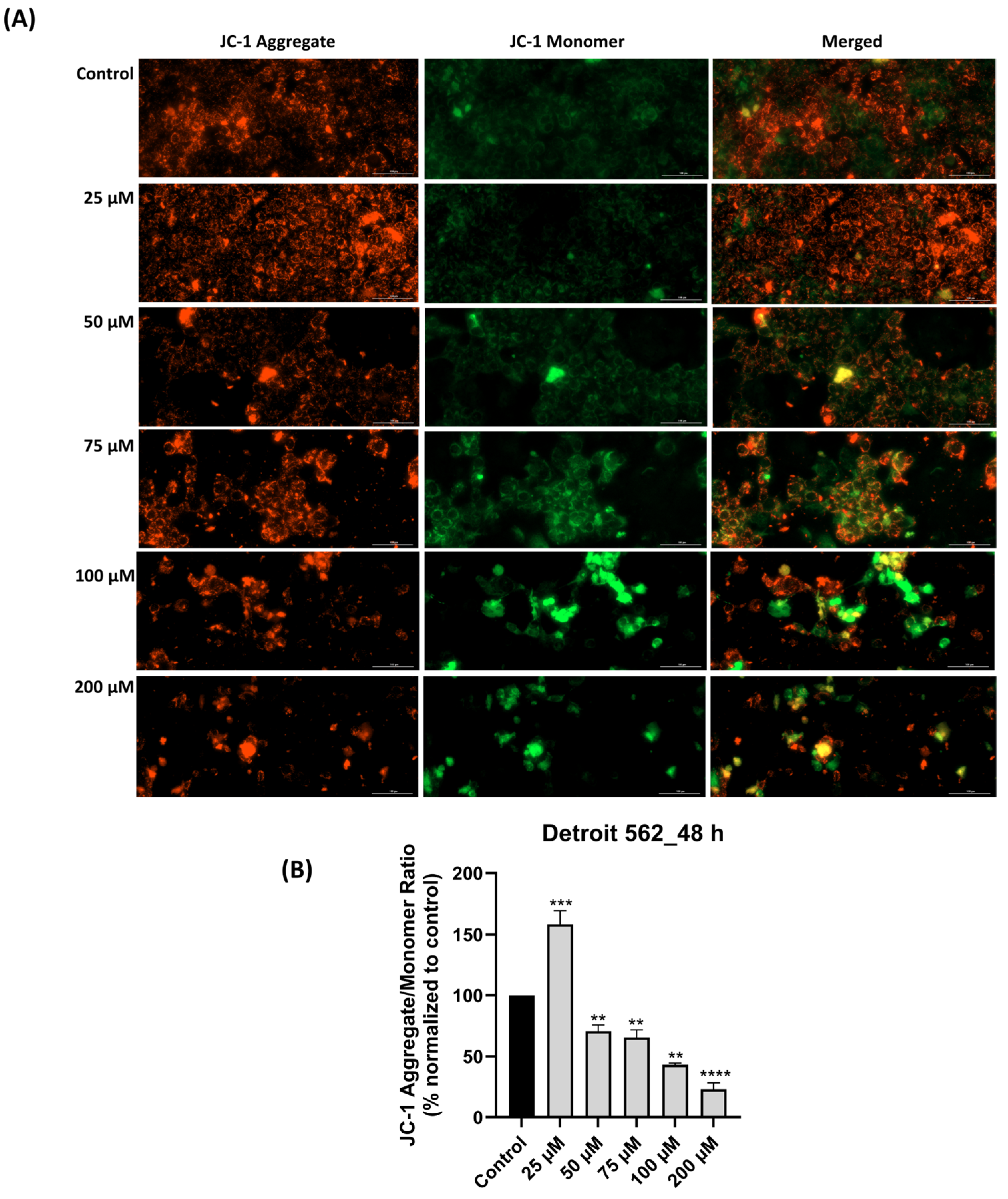 2.7. Mitochondrial Membrane Potential (ΔΨm) Assay—JC-1 Staining