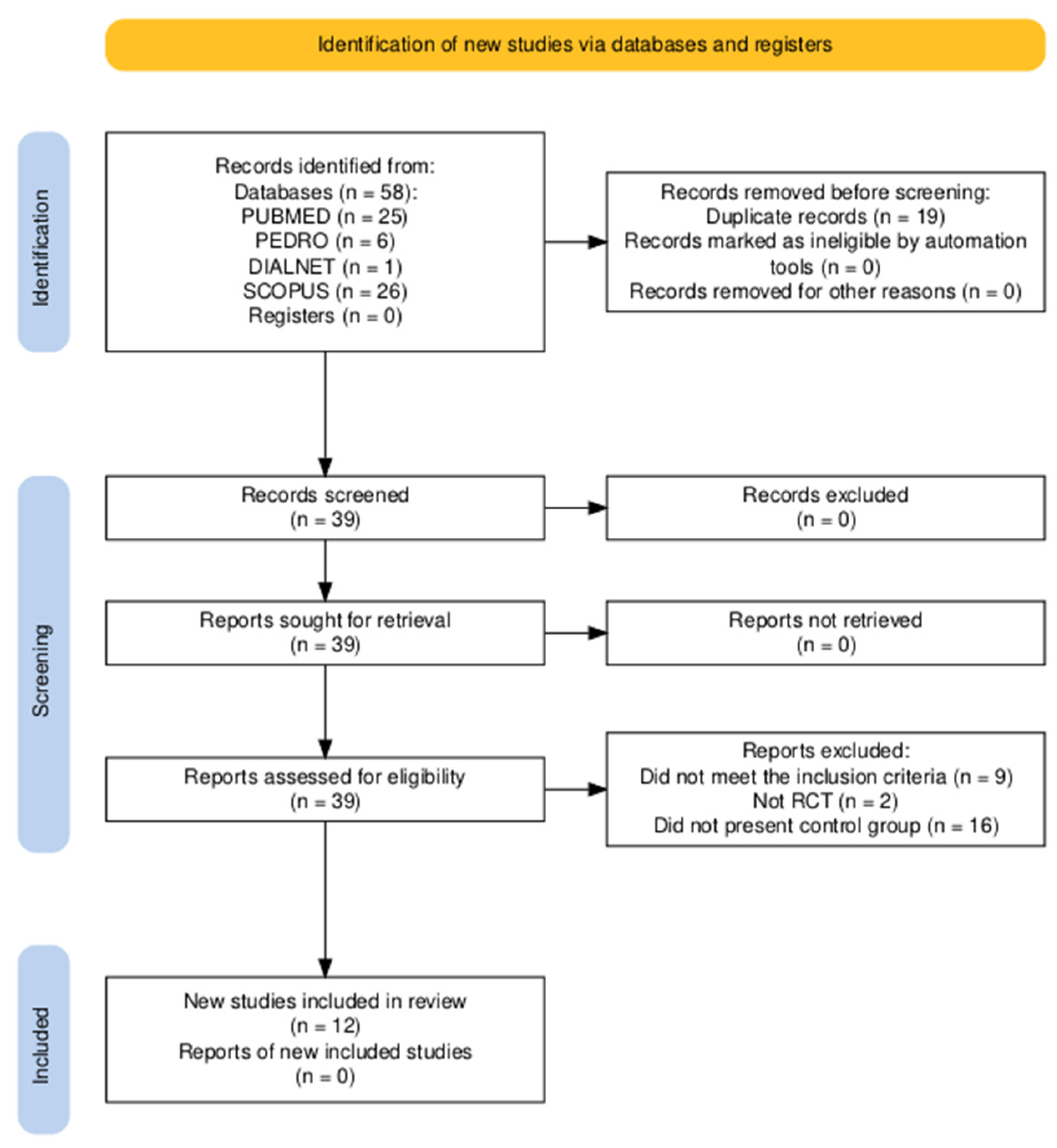 - Type of studies: clinical trials and randomized controlled trials published in the last 10 years in Spanish or English, which included at least two study outcome measures.