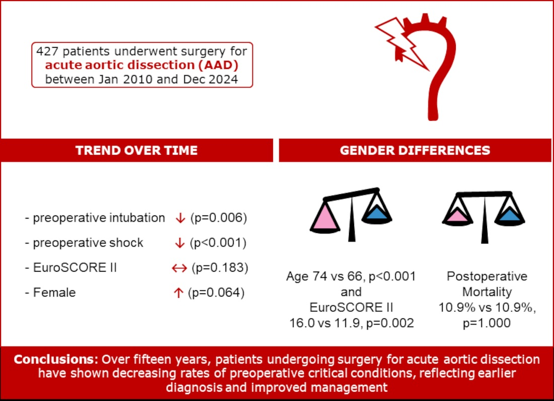 - Meccanici, F.; Thijssen, C.G.E.; Gökalp, A.L.; van Wijngaarden, M.H.E.J.; Bierhuizen, M.F.A.; Custers, G.F.; Evers, J.; de Veld, J.A.; Notenboom, M.L.; Geuzebroek, G.S.C.; et al. Presentation, management, and clinical outcomes of acute type A dissection: Does sex matter? JTCVS Open 2024, 24, 47–57. [Google Scholar] [CrossRef] [PubMed]