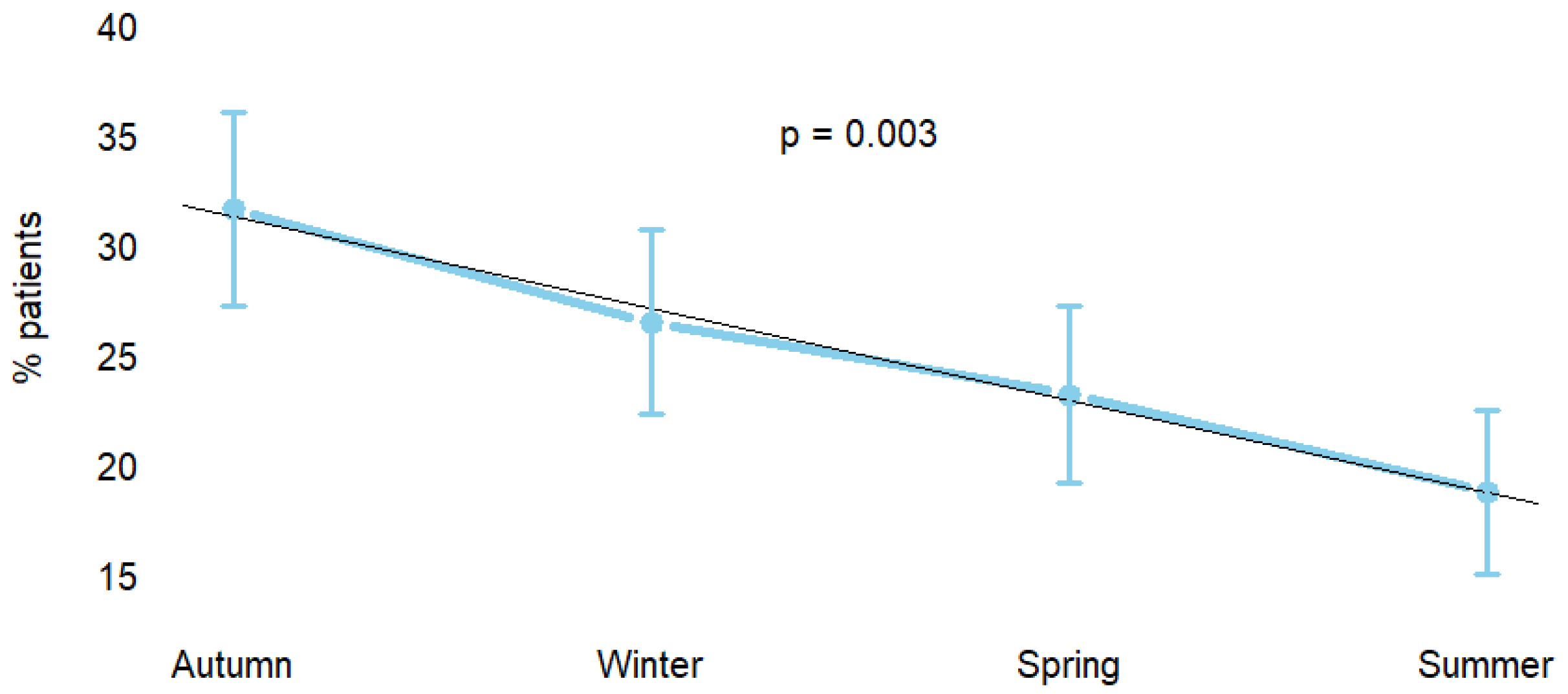 | 2010–2012 | 2013–2015 | 2016–2018 | 2019–2021 | 2022–2024 | p | p for Trend | Trend | |
