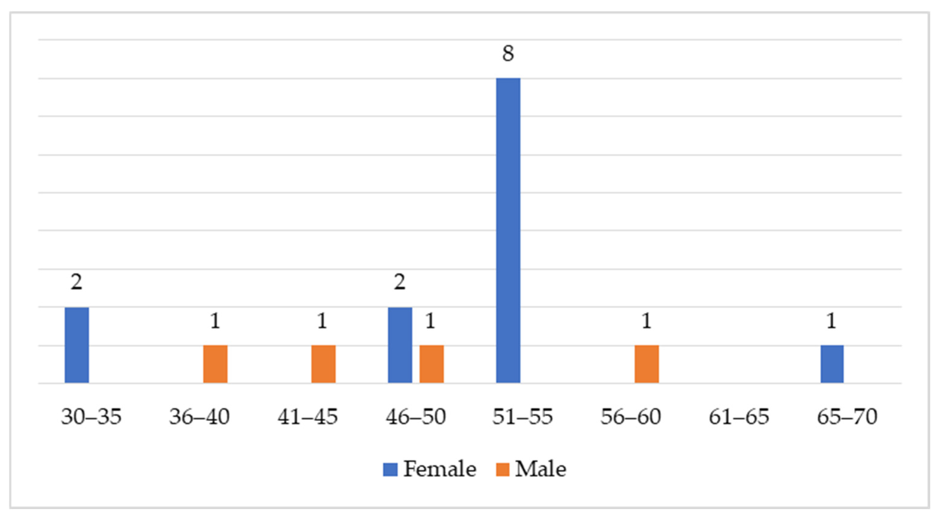 Of the 17 participants included in the final analysis, four were male and 13 were female. The median age was 54 years (IQR: 46–55), with the youngest participant being 34 years and the oldest 66 years (