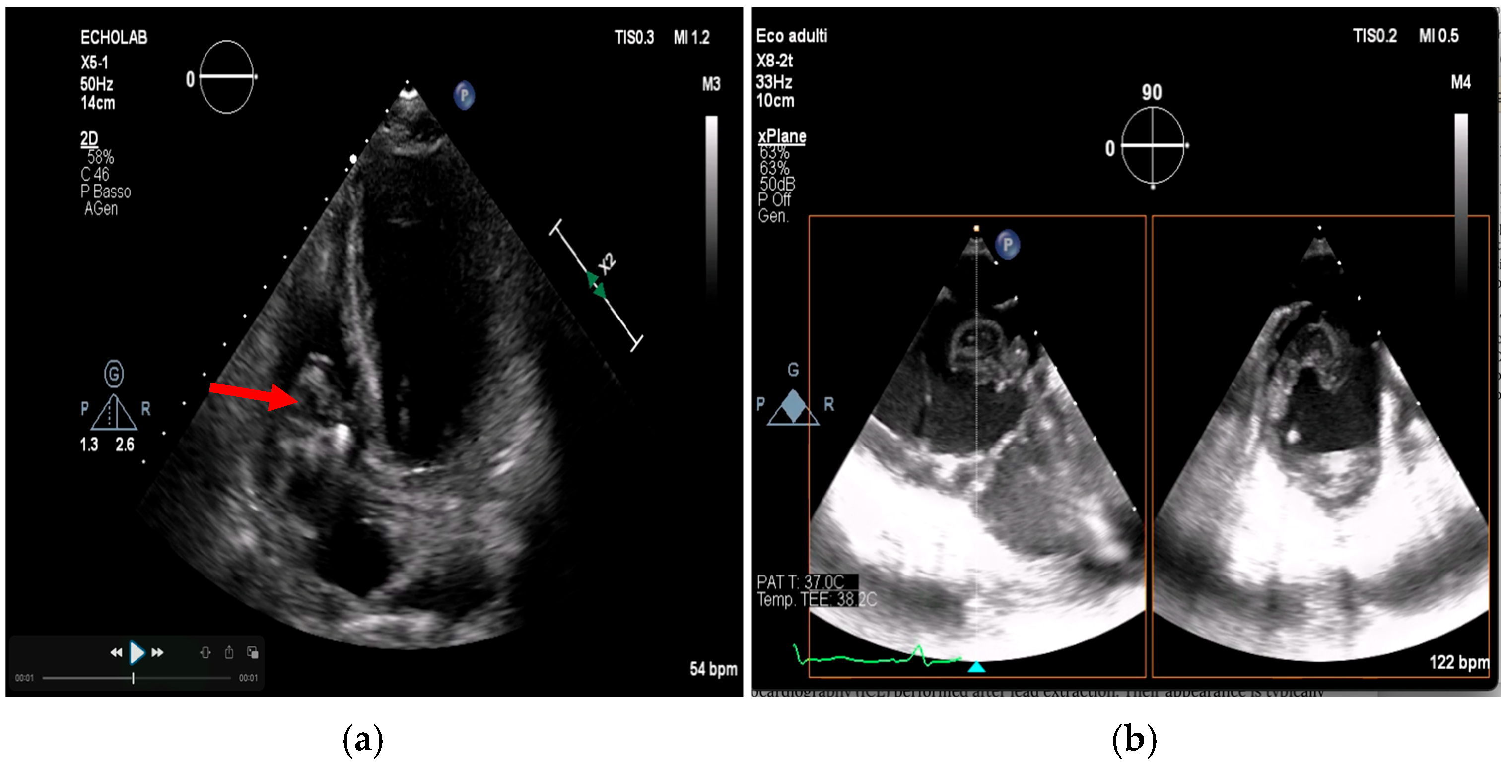 - Greco, C.A.; Zaccaria, S.; Casali, G.; Nicolardi, S.; Albanese, M. Echocardiography in Endocarditis. Echocardiography 2024, 41, e15945. [Google Scholar] [CrossRef]