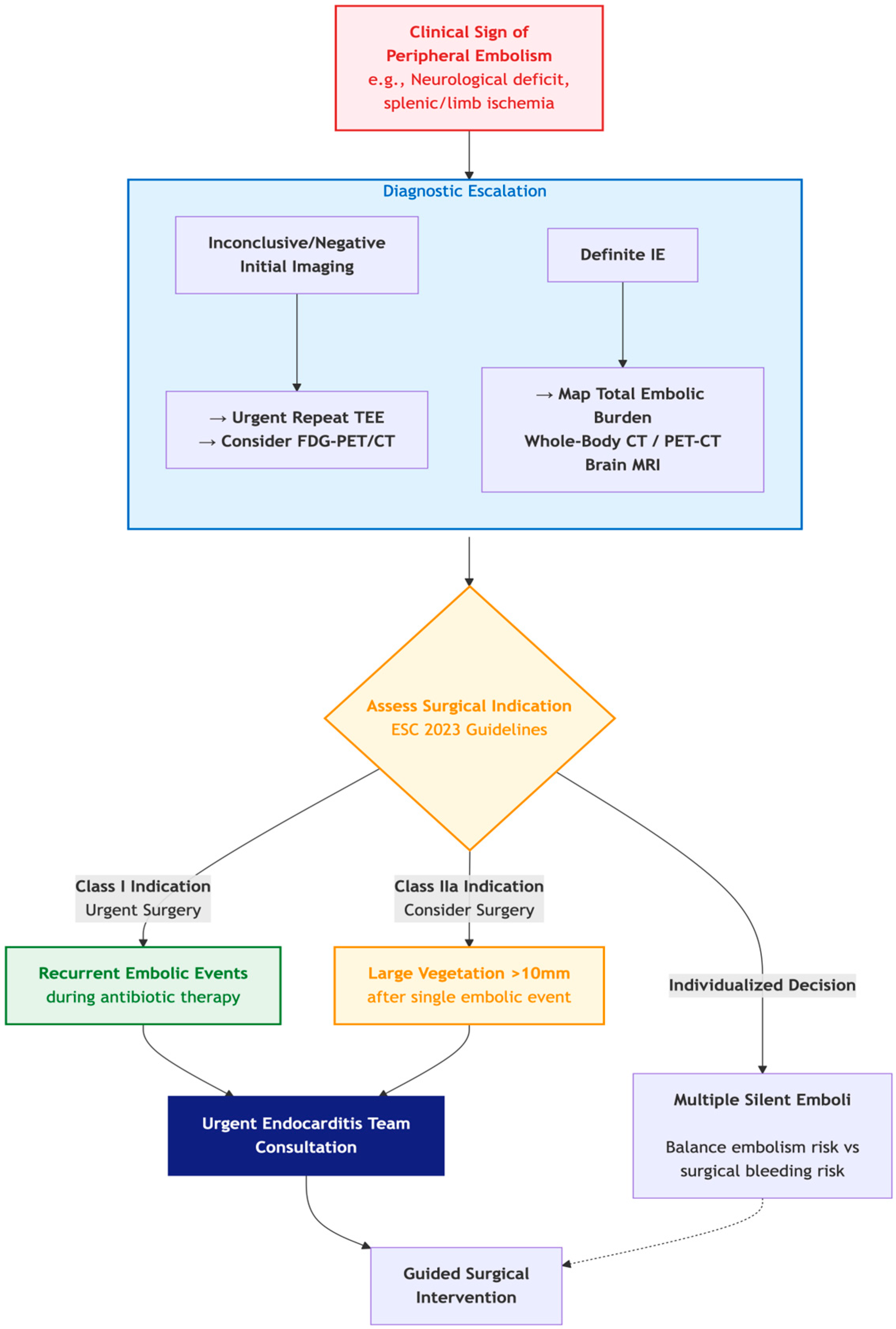 - Impact of Silent Emboli: The discovery of multiple silent emboli, particularly cerebral, creates a complex risk-benefit calculus. While not a direct surgical indication, it necessitates a nuanced, multidisciplinary decision regarding the timing of surgery to balance the risk of recurrent embolism against the risk of hemorrhagic transformation of cerebral infarcts.