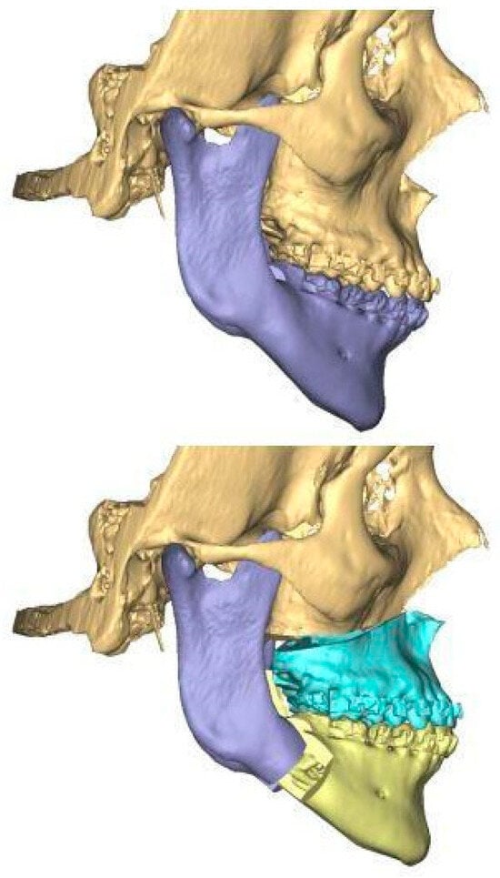 - Steinhuber, T.; Brunold, S.; Gärtner, C.; Offermanns, V.; Ulmer, H.; Ploder, O. Is Virtual Surgical Planning in Orthognathic Surgery Faster Than Conventional Planning? A Time and Workflow Analysis of an Office-Based Workflow for Single- and Double-Jaw Surgery. J. Oral Maxillofac. Surg. 2018, 76, 397–407. [Google Scholar] [CrossRef]