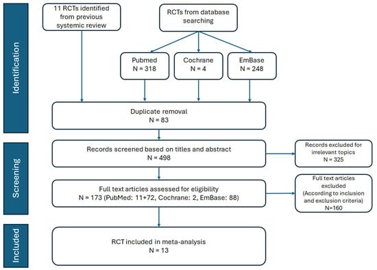 This study followed the guidelines of the preferred reporting items for systematic reviews and meta-analyses (PRISMA) [24]. PubMed was first searched for primary reference for this study in using the following syntax: (Sodium–Glucose Transporter 2 OR Canagliflozin or Dapagliflozin OR Empagliflozin OR Ertugliflozin OR Sotagliflozin) and (Cardiovascular Outcomes) and (Meta-analysis). The meta-analysis published by Dario Giugliano et al. [25] in 2021 was chosen as the primary reference of this study. Next, further searches were conducted using PubMed, Cochrane, and Embase databases. The search period was from the end date of the primary reference search (30 September 2021 to 17 May 2023). The following syntax was used in PubMed and resulted in 318 articles: (“Sodium-Glucose Transporter 2” [Mesh] OR Canagliflozin OR Dapagliflozin OR Empagliflozin OR Ertugliflozin OR Sotagliflozin) and (“Diabetes Mellitus, Type 2” [Mesh] OR “Heart Failure” [Mesh] OR “Chronic kidney failure” [Mesh]) therapy/narrow [filter] 2021: 2023 [dp] AND (Randomized Controlled Trial). The following syntax was used for a search conducted in Cochrane and restricted to the date range between 30 September 2021 and 17 May 2023, which resulted in a total of 4 articles: (Sodium–Glucose Transporter 2 Inhibitors OR Canagliflozin OR Dapagliflozin OR Empagliflozin OR Ertugliflozin OR Sotagliflozin) AND (Type 2 Diabetes Mellitus OR Heart Failure OR Chronic Kidney Diseases) AND (Randomized Controlled Trial) AND (CVOT). A search use PICOS (Population: non-insulin dependent diabetes mellitus OR heart failure OR chronic kidney failure, Intervention: sodium glucose co-transporter 2 inhibitor, Comparison: placebo, Outcome: cardiovascular disease, Study design: randomized controlled trial) in Embase database was conducted and limited to the search dates from 30 September 2021 to 17 May 2023, which resulted in 248 articles. EndNote 20.4 was introduced to automatically delete duplicate articles.