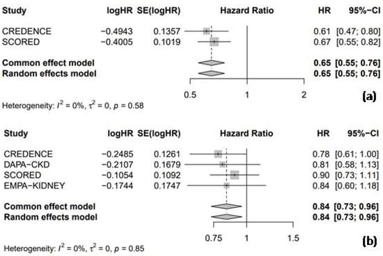 In 2022, Li, N. et al. [45] published a meta-analysis on the use of SGLT2 inhibitors in patients with CKD, focusing on cardiovascular outcomes. Their findings demonstrated that SGLT2 inhibitors significantly reduced the RR of HHF or cardiovascular death, consistent with the results of our study.