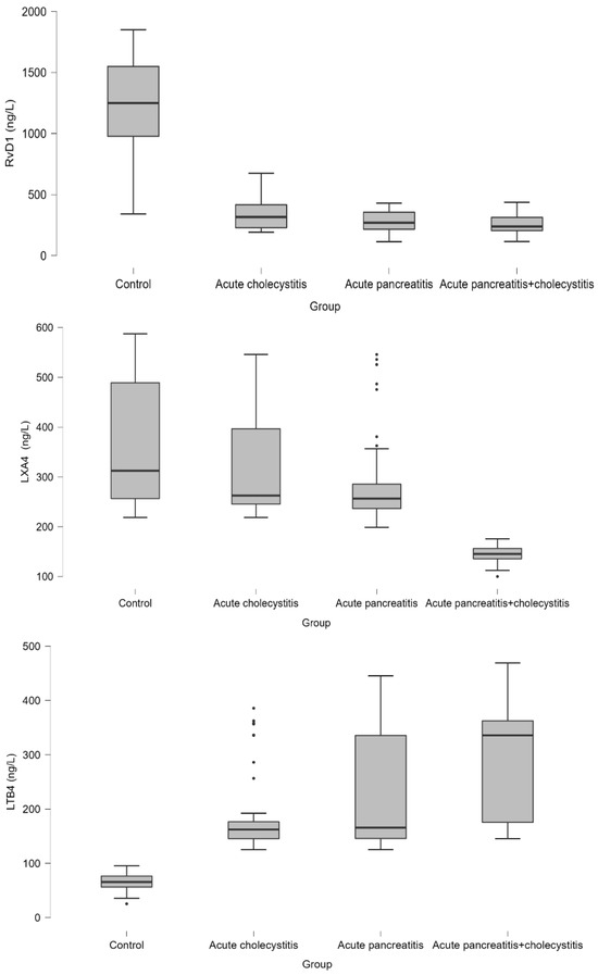 Knowledge of the above mechanisms may provide new strategies to promote inflammation resolution in chronic inflammatory diseases such as pancreatitis. The aim of our study was to investigate the levels of circulating LTB4, LXA4, and resolvin D1 in pancreatitis due to gallstones in the etiologic investigation of AP, which are among the causes of serious morbidity and mortality.
