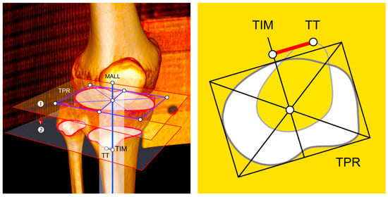 - Nizić, D.; Šimunović, M.; Pavliša, G.; Jelić, M. Tibial tuberosity–tibial intercondylar midpoint distance measured on computed tomography scanner is not biased during knee rotation and could be clinically more relevant than current measurement systems. Int. Orthop. (SICOT) 2020, 45, 959–970. [Google Scholar] [CrossRef] [PubMed]