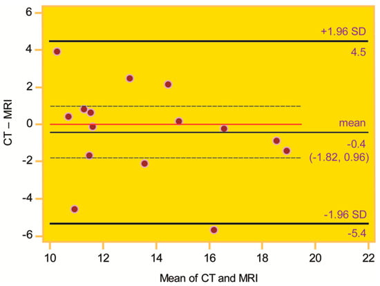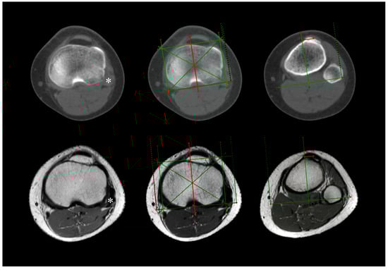 APA StyleNizić, D., Šimunović, M., Serdar, J., Vlaić, J., Josipović, M., Levaj, I., Ivić-Hofman, I., & Jelić, M. (2025). Tibial Tuberosity–Tibial Intercondylar Midpoint Distance Can Be Interchangeably Measured on Axial CT and MRI: Retrospective Cross-Sectional Comparative Study. Medicina, 61(2), 348. https://doi.org/10.3390/medicina61020348