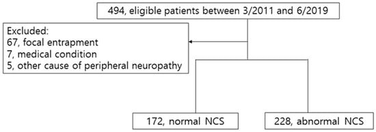 | Variables | Normal NCS (n = 172) | Abnormal NCS (n = 228) | p-Value |