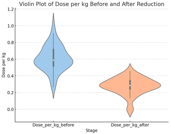 Among the different dosage options, the majority of patients (86%) received a dose of 0.5–075 mg/kg. A total of 52 patients out of the 57 had a dose reduction of 50%, as shown in (Figure 1). This dose reduction was found to significantly decrease triglyceride levels primarily. However, there were no significant changes observed in the HDL (p = 0.392), LDL (p = 0.321), or cholesterol (p = 0.081) levels following the dose reduction (Table 5).