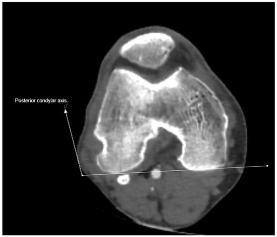 In this study, all images were obtained with a 64-slice CT scanner (Siemens Healthineers, Erlangen, Germany). Images were evaluated by two observers (Ş.K. and A.Ş.) using a Picture Archiving and Communication System integrated with the hospital’s information system. The images of patients deemed suitable for evaluation by both observers were included and necessary measurements were performed by both observers. Measurements were taken of the bilateral lower extremity CTAs of all patients, focusing on two distal anatomical reference points on each femur. A total of 16 measurements (1280 for 80 extremities) were made for each extremity and 7 ratios (560 for 80 extremities) were calculated based on the measurements. The first measurement was the distance between the greater trochanter (GT) and the AT, whereas the second was the distance between the GT and the distal medial condylar plateau (DMC). The condylar line-adjusted anteversion angle was measured on the right and left lower extremity CTAs of all patients [] (Figure 1 and Figure 2).