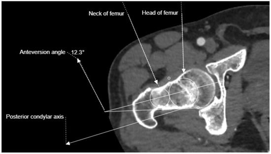 Right femoral anteversion angle corrected according to posterior condylar axis.