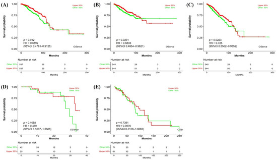 - Filippi, A.; Mocanu, M.M. Mining TCGA database for genes with prognostic value in breast cancer. Int. J. Mol. Sci. 2023, 24, 1622. [Google Scholar] [CrossRef] [PubMed]