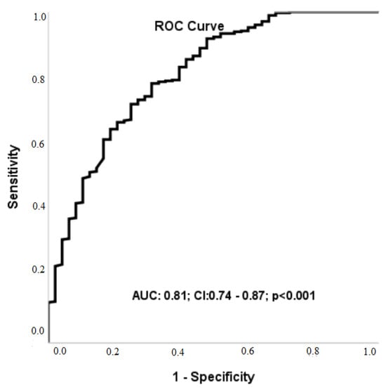 The ROC analysis also demonstrated that an LVGFI cut-off value of 23.22 predicted three-year mortality with a sensitivity of 72% and specificity of 75% (AUC: 0.81; 95% CI: 0.74–0.87; p < 0.001) (Figure 2).
