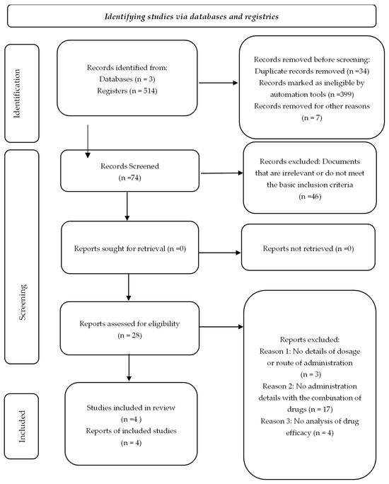 The flow chart illustrating the process of searching for and selecting studies is presented in Figure 1 and Figure S1. Finally, four studies were selected that, although initially classified as controlled clinical trials (RCTs), corresponded to the case reports, highlighting the importance of a thorough systematic review.