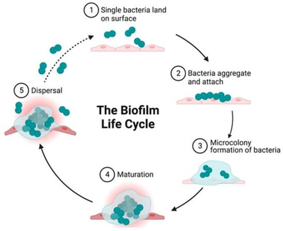 - Schulze, A.; Mitterer, F.; Pombo, J.P.; Schild, S. Biofilms by bacterial human pathogens: Clinical relevance—Development, composition and regulation—Therapeutical strategies. Microb. Cell 2021, 8, 28–56. [Google Scholar] [CrossRef] [PubMed]