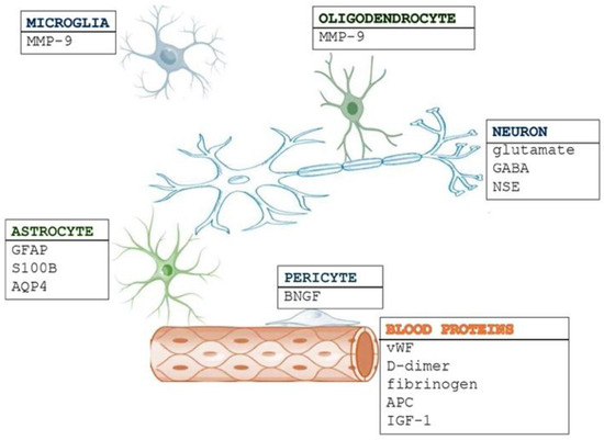 After a stroke, a series of pathophysiological events occur, progressively causing neuronal damage and ultimately leading to cell death if left untreated [3]. This process follows a time-dependent pattern, with each stage characterized by unique biochemical changes and the release of specific biomarkers that can aid in early diagnosis. The neurovascular unit, as a multicellular structure, represents a potential source of biomarkers for cerebrovascular diseases.