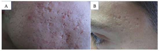 (A) Icepick scars; (B) boxcar scars. Source: Acne Scars: Pathogenesis, Classification and Treatment. Ref. [].