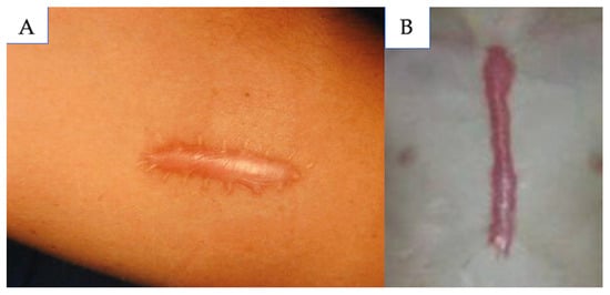 (A) Hypertrophic scar; (B) chest hypertrophic scar. Source: Textbook on Scar Management: State of the Art Management and Emerging Technologies, Chapters 9 and 46. Refs. [,].