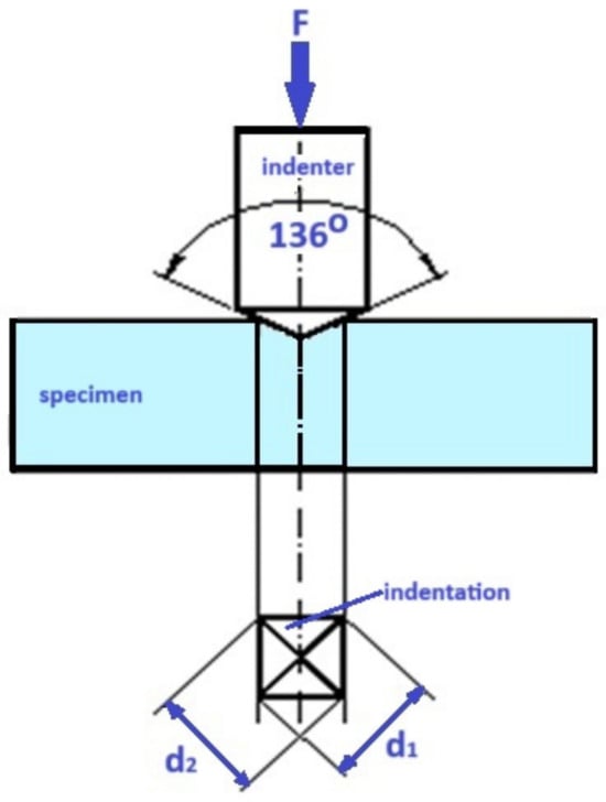 (Hv: Vickers microhardness, P: the indentation load, d: the length of the diagonal of the indentation) (